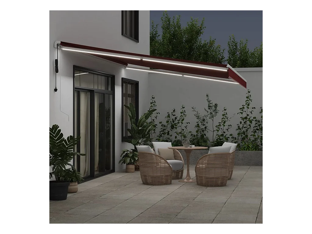 Tenda da Sole Retrattile Automatica con LED Bordò 500x300 cm