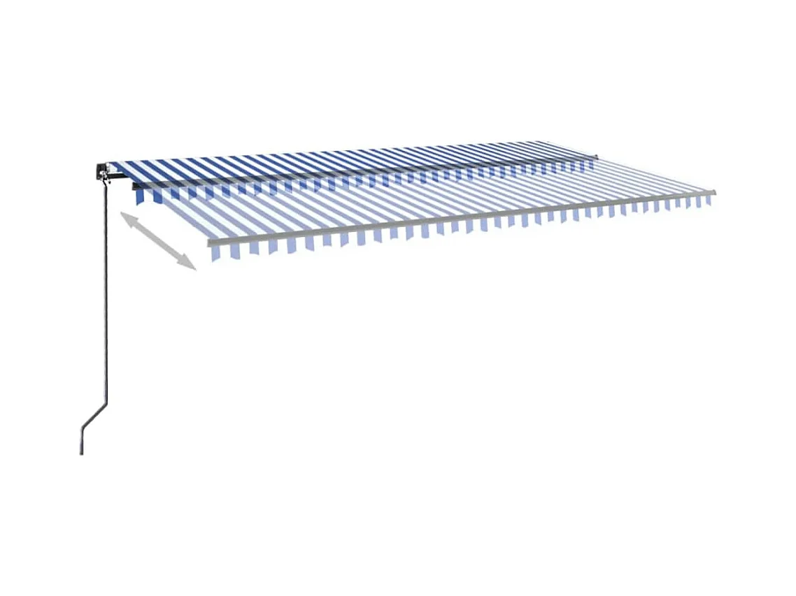Tenda da Sole Retrattile Manuale con LED 600x350 cm Blu Bianco