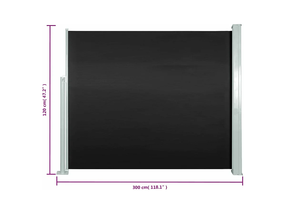 Tenda laterale retrattile 120 x 300 cm Nera