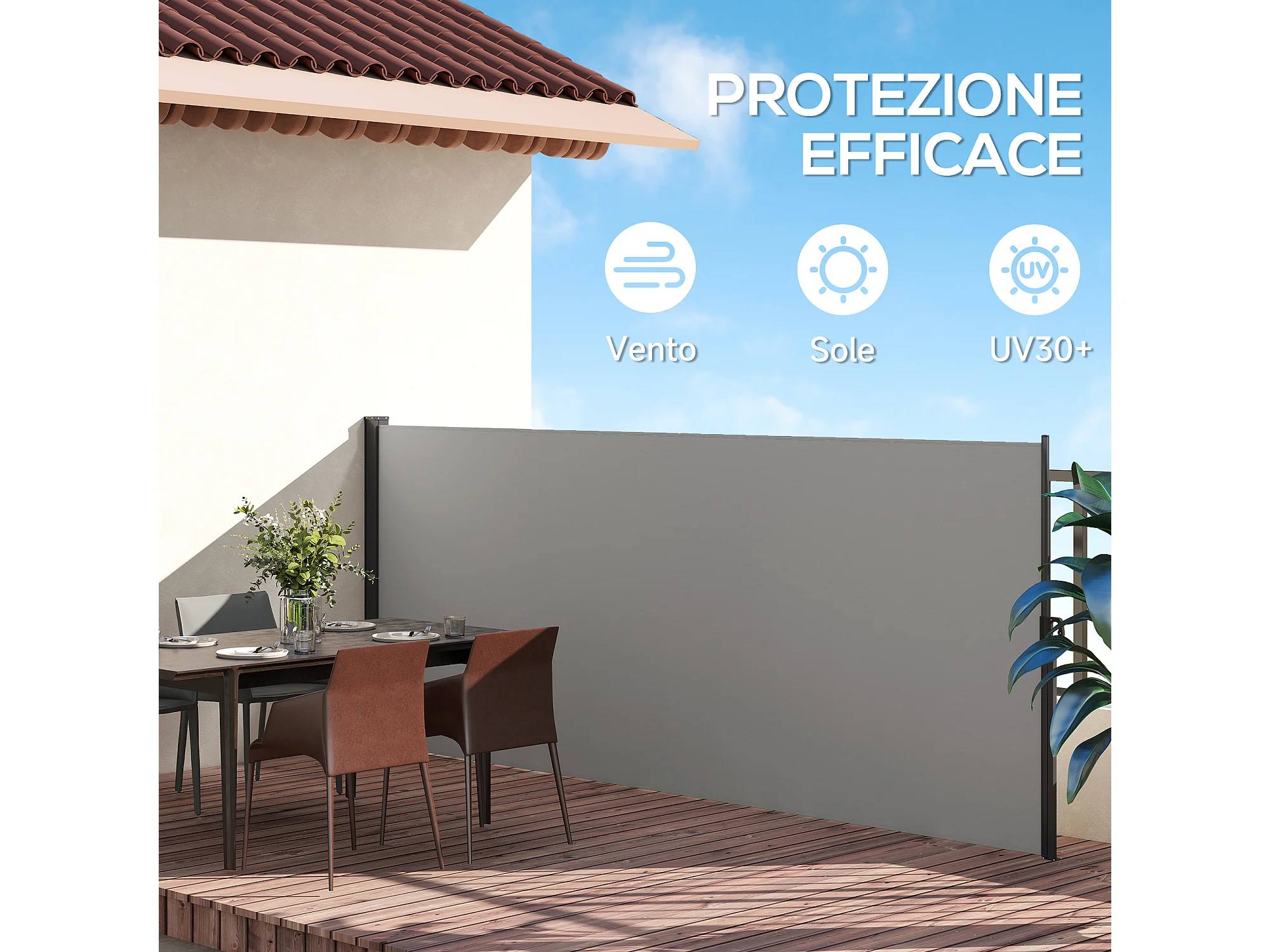 Tenda laterale retrattile 400x160 cm con maniglia grigio chiaro