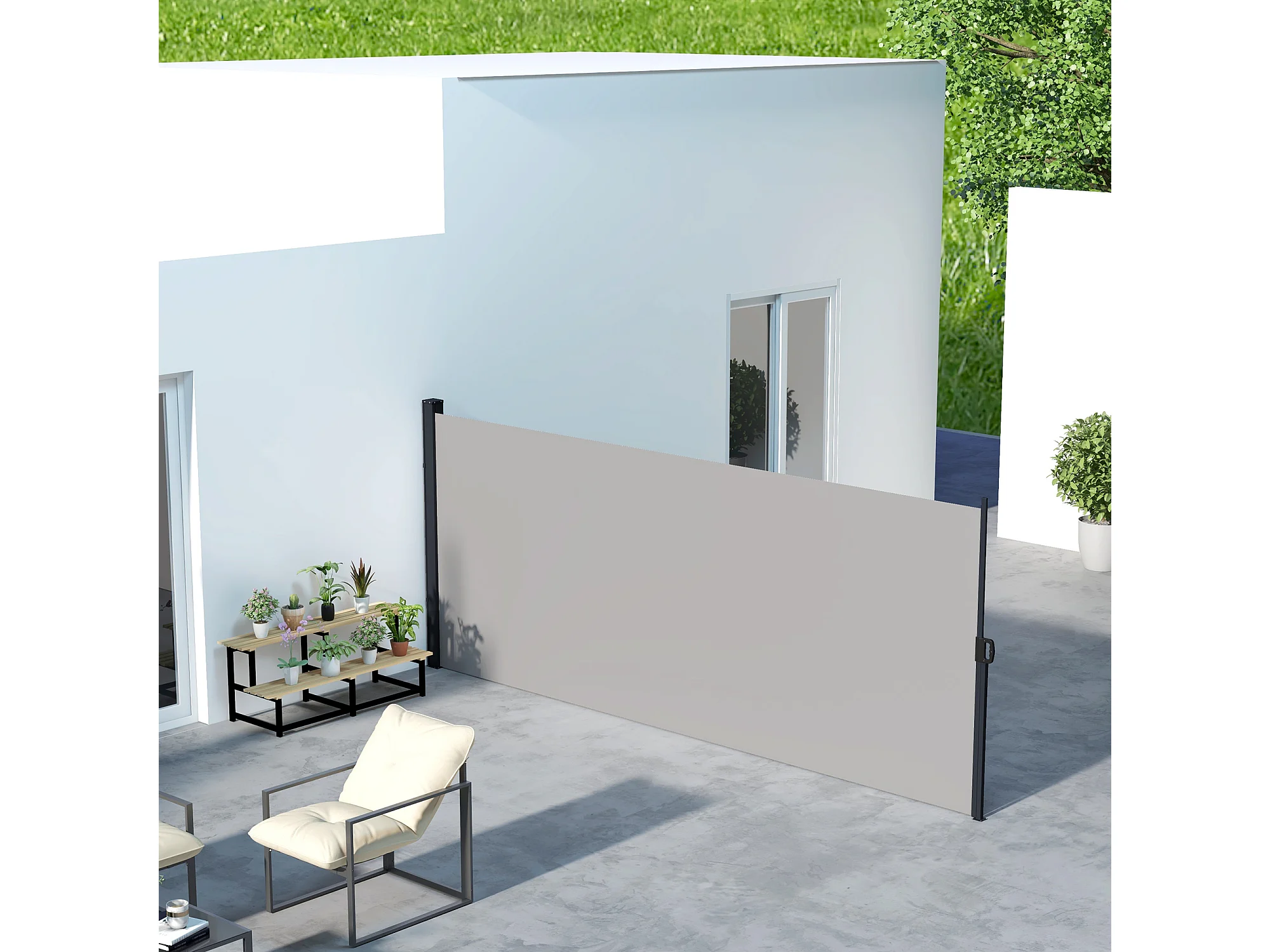 Tenda laterale retrattile 400x180 cm con maniglia grigio chiaro