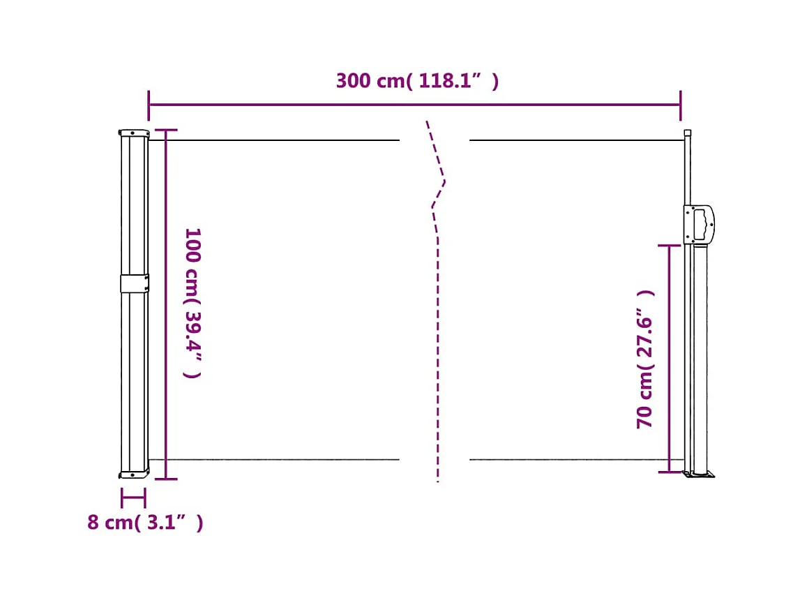 Tenda da sole laterale retrattile 100 x 300 cm Grigia