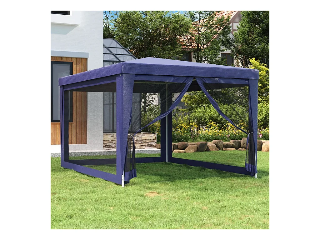 Tenda per Feste con 4 Pareti Laterali in Rete Blu 3x4 m HDPE