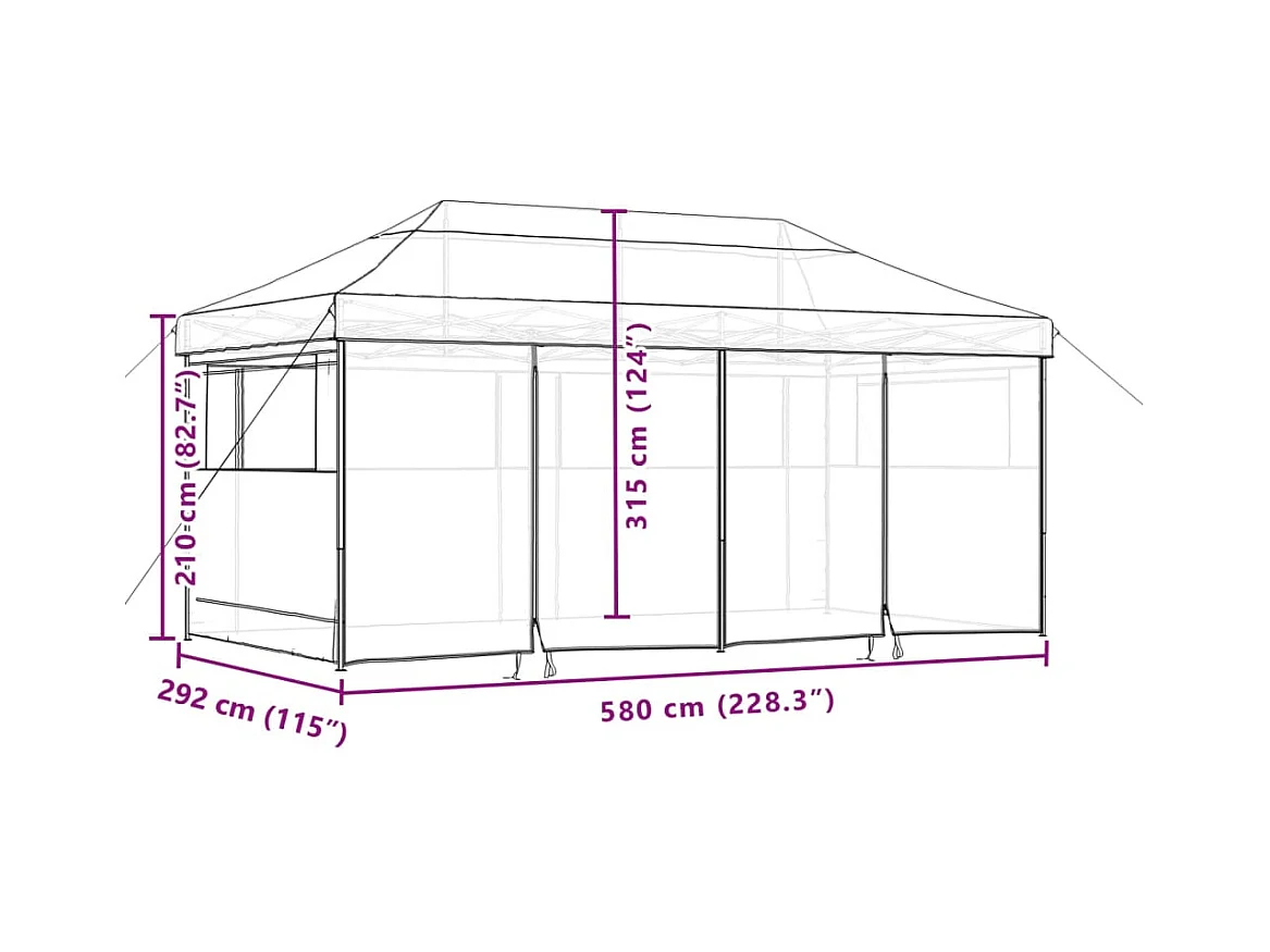 Tenda pieghevole pop-up per ricevimenti con 4 pareti laterali
