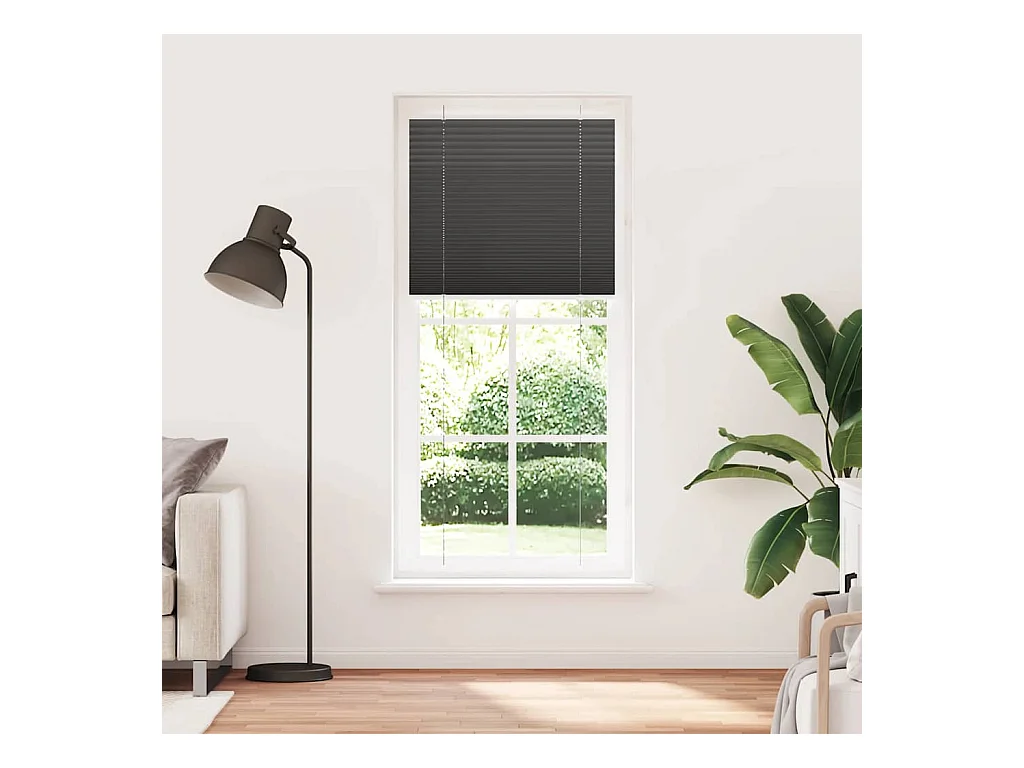Tenda plissettata nera 75x200 cm larghezza tessuto 74,4 cm poliestere