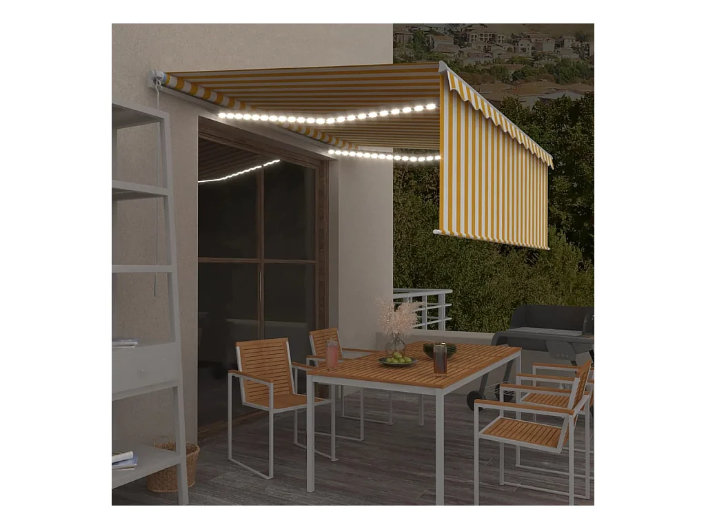 Tenda da Sole Retrattile Manuale e LED 400x300cm Gialla Bianca