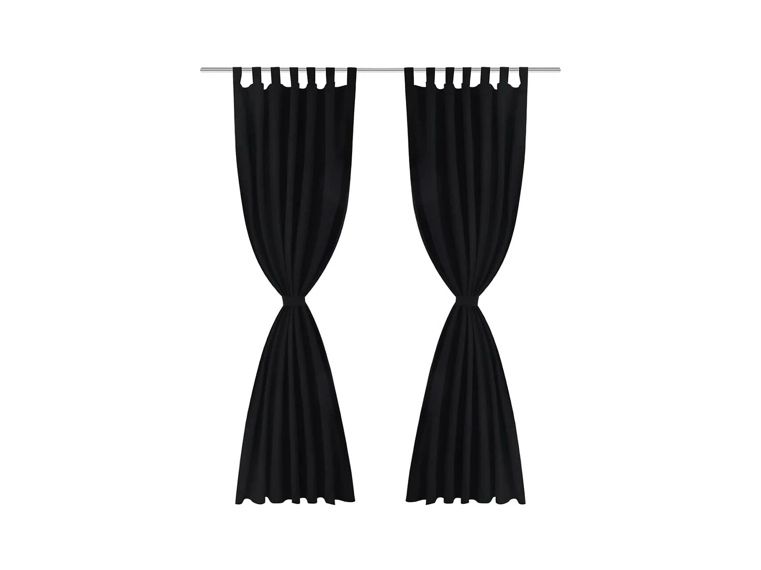 2 tende con passanti in micro raso nero, 140 x 225 cm