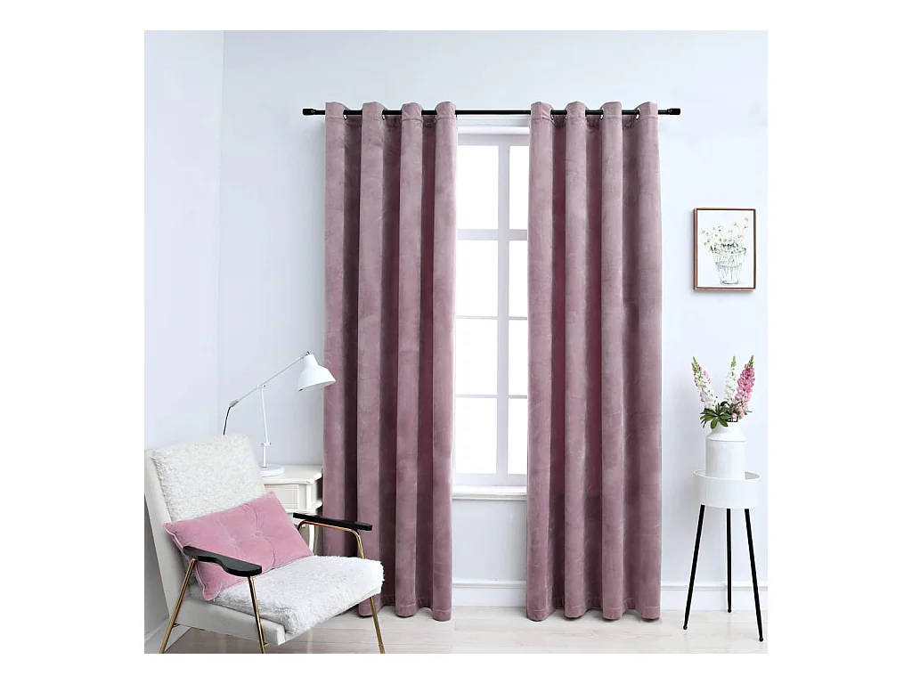 Tende oscuranti con anelli 2 pz Velluto Rosa 140x175 cm