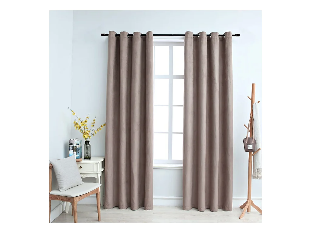 Tende oscuranti con anelli in metallo 2 pz Tortora 140x225 cm