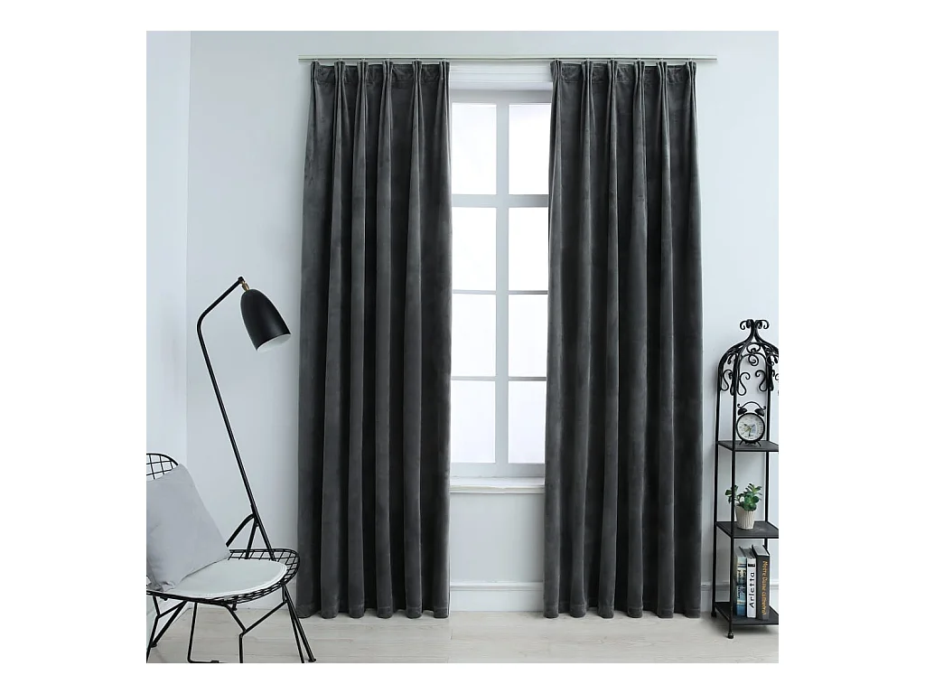 Tende oscuranti e gancio 2pz Velluto Antracite 140x175cm