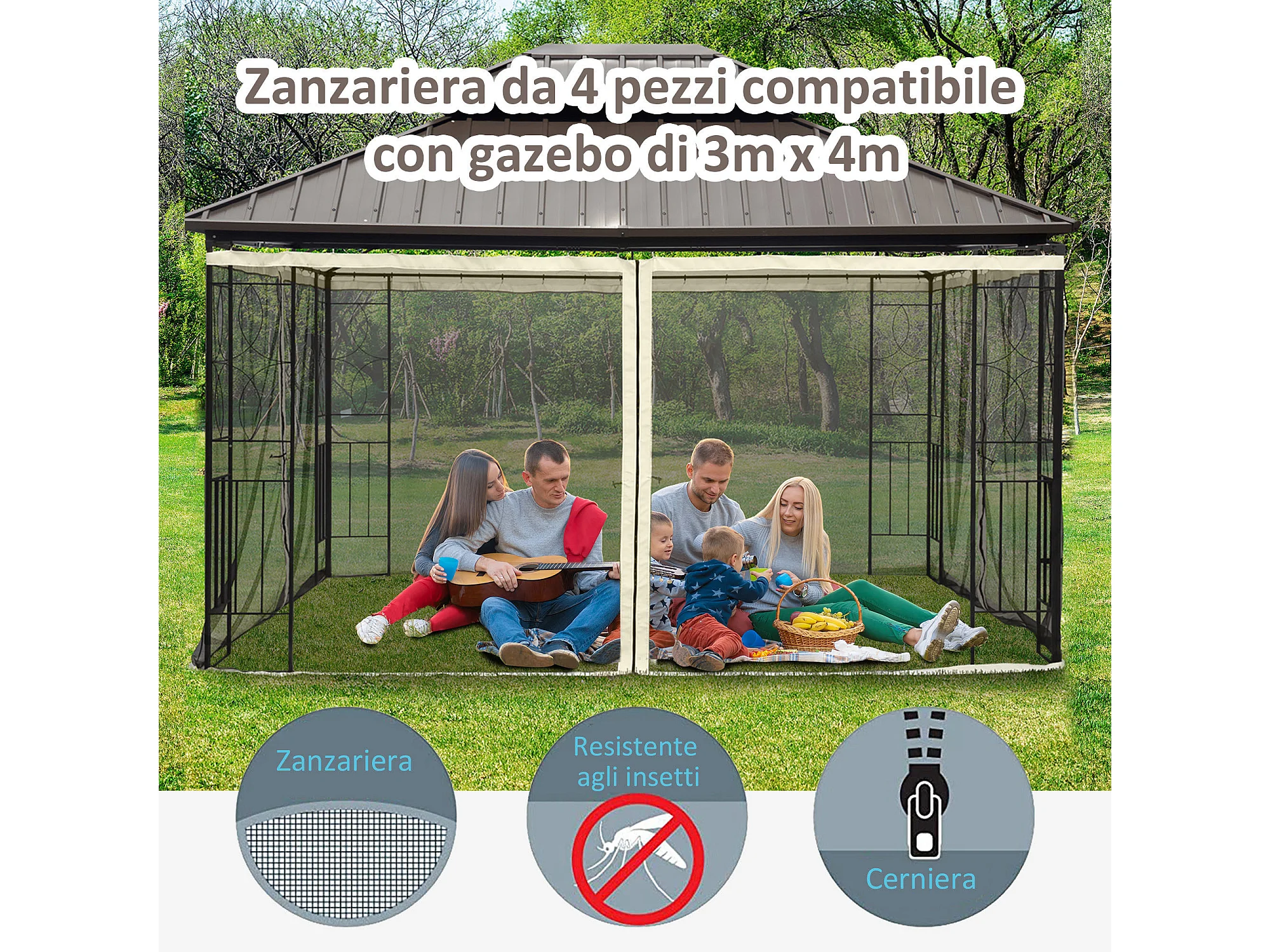 Tende zanzariera per gazebo ricambio universale nero e beige