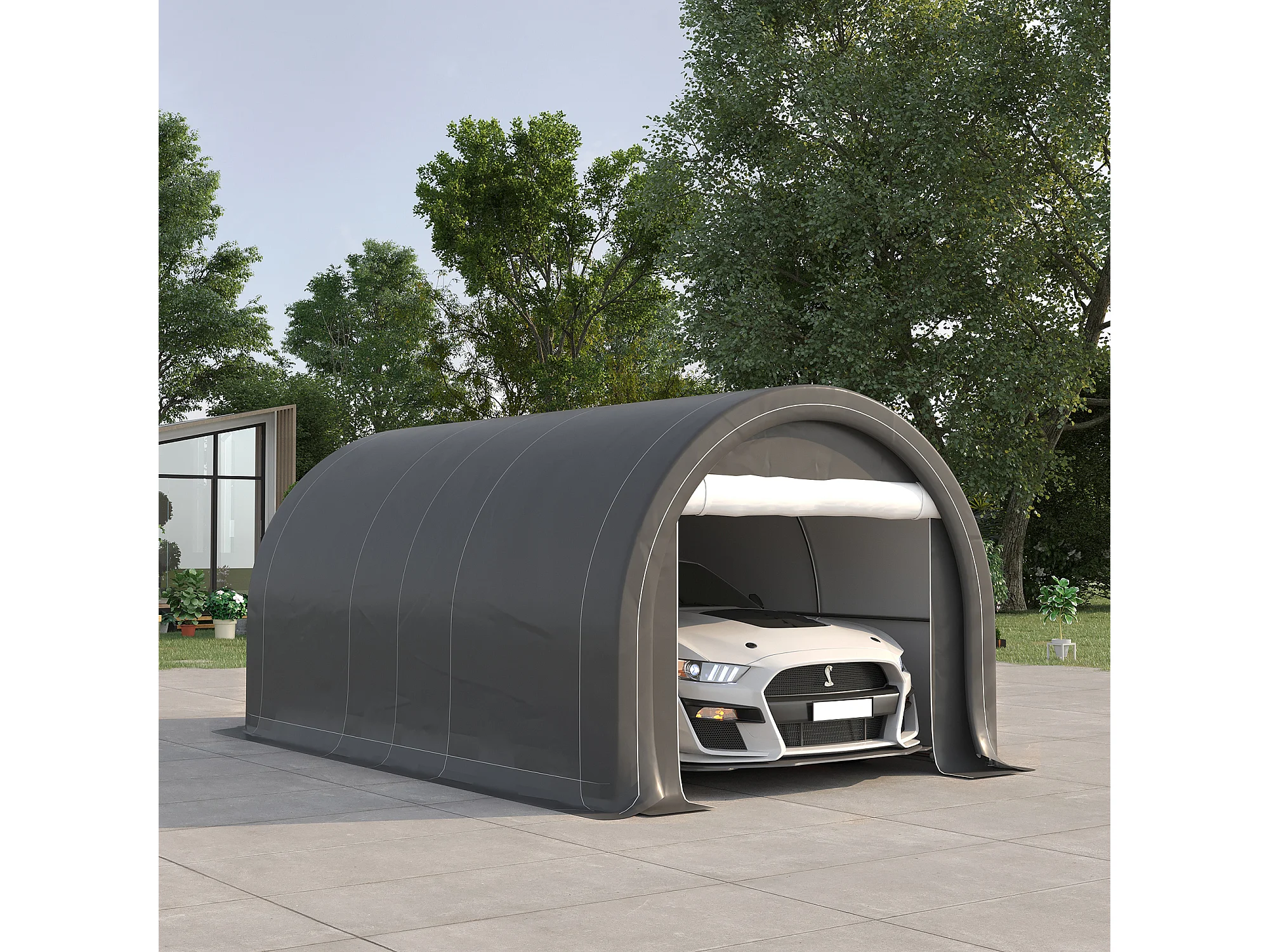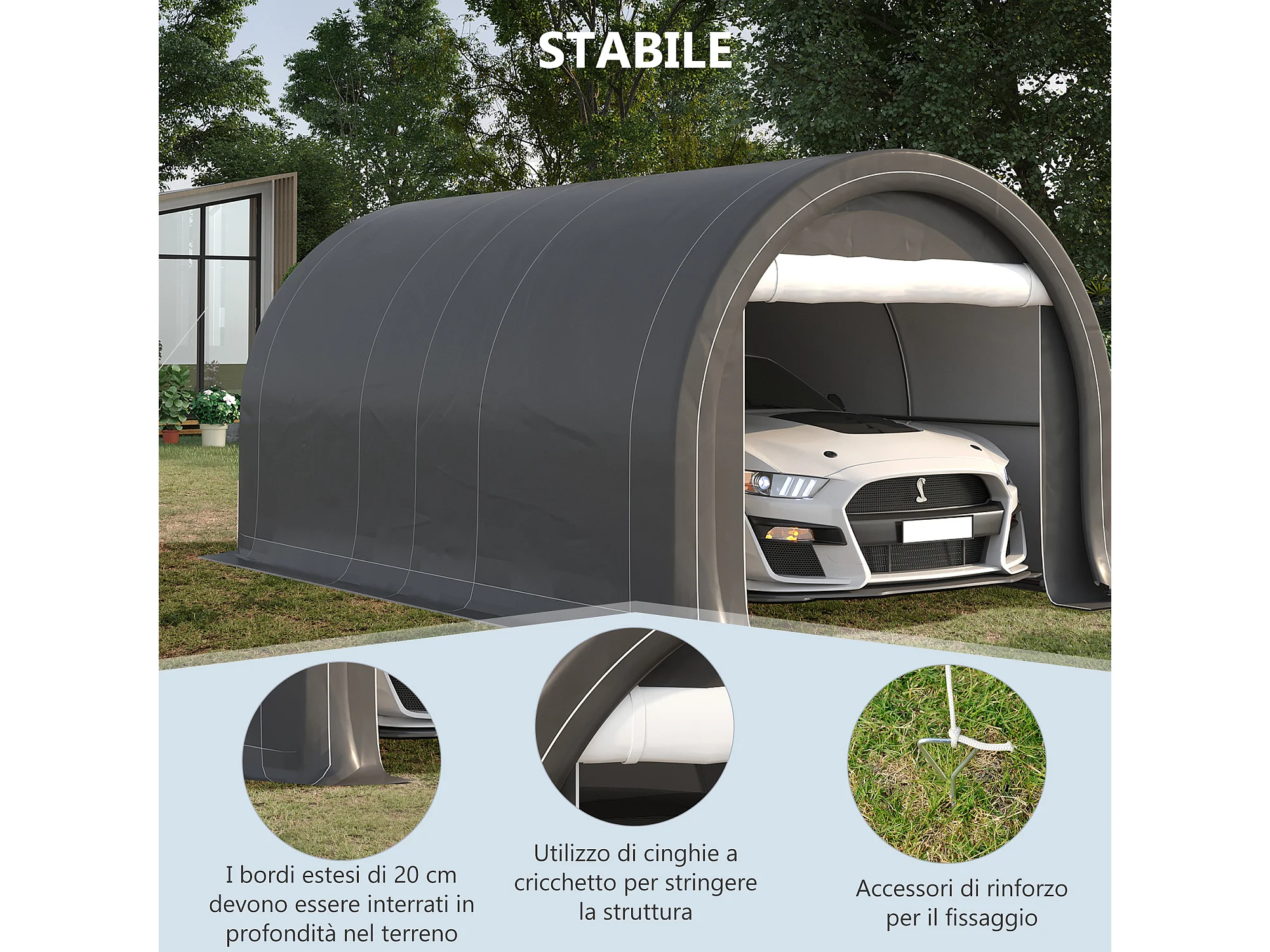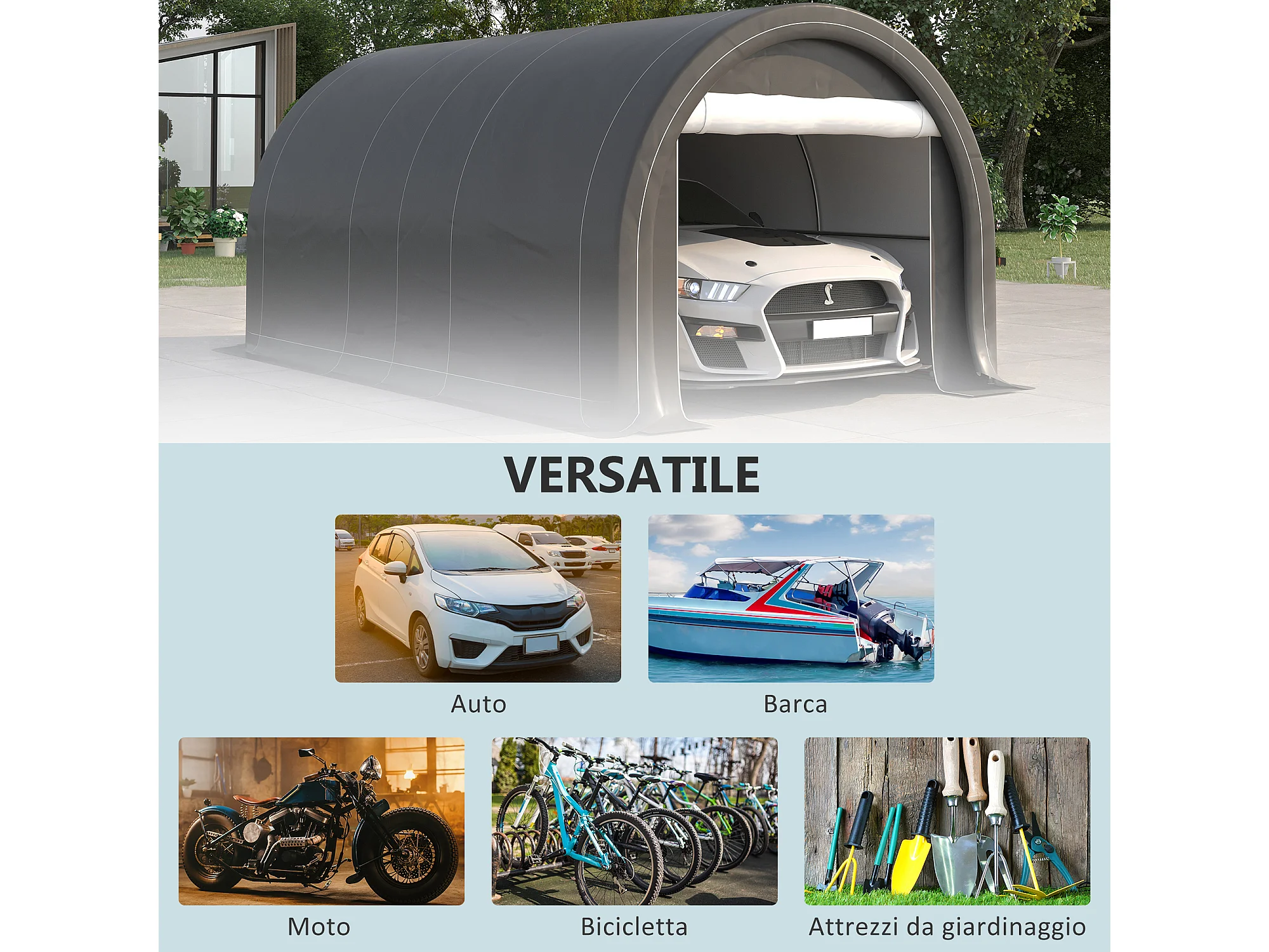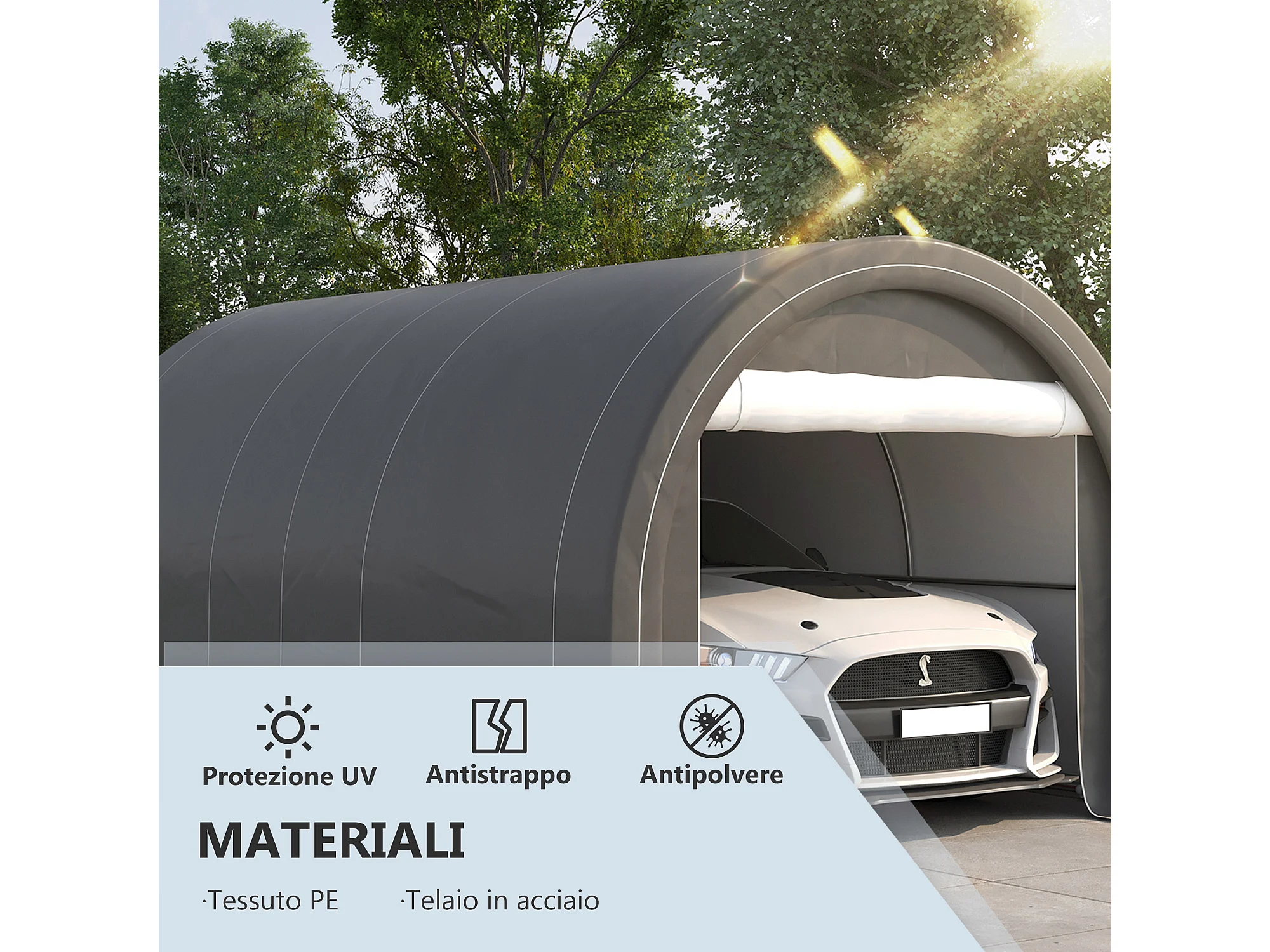 Tendone per auto e attrezzi in acciaio zincato e pe grigio