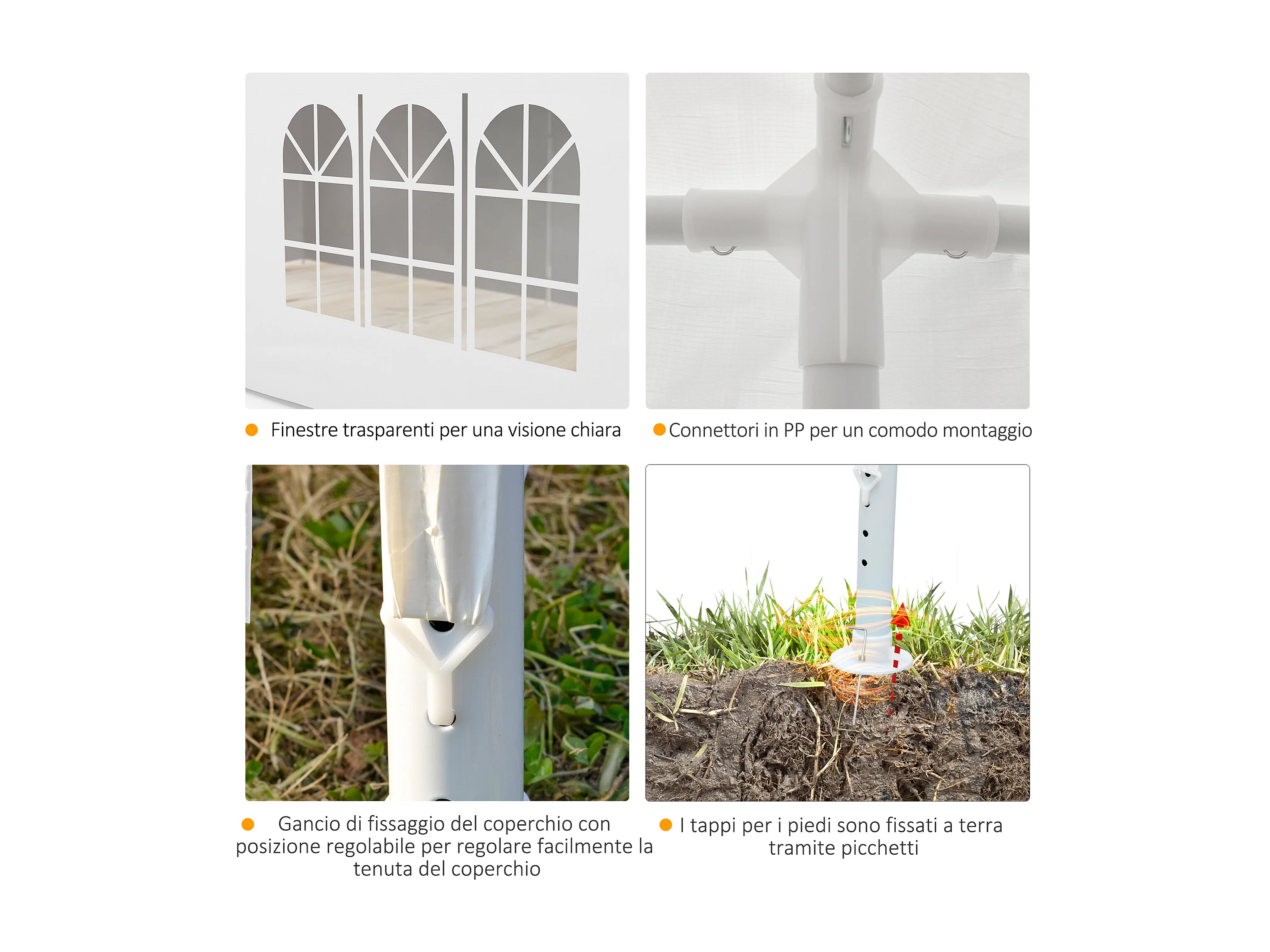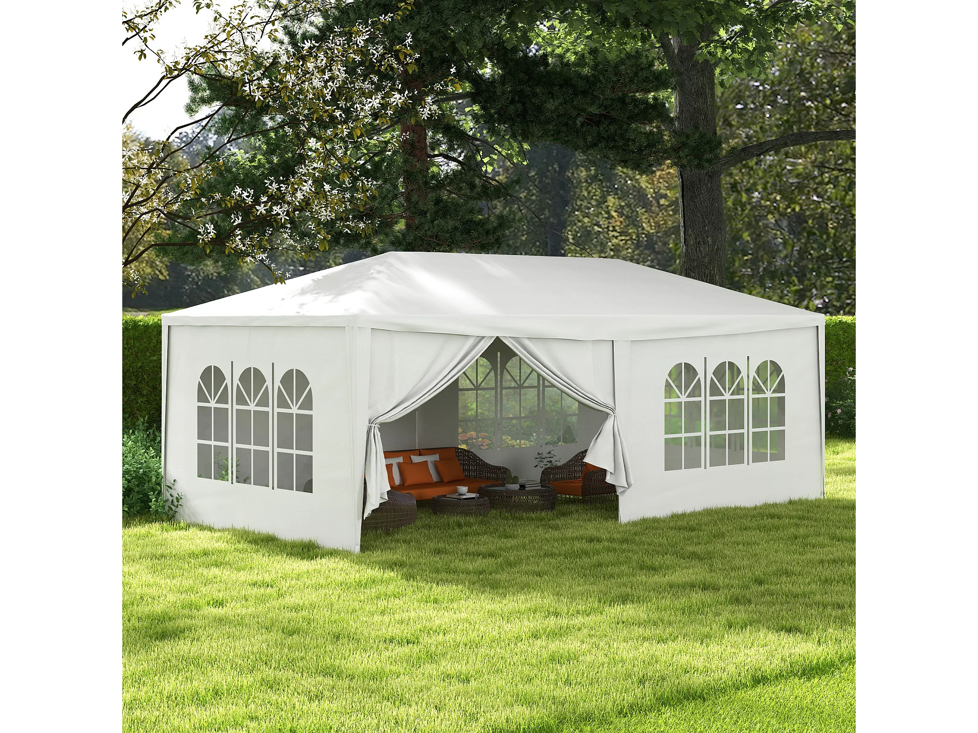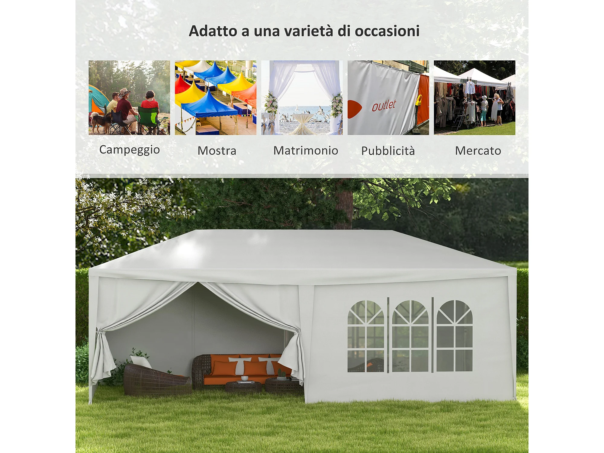 Tendone per feste 6x3m con pareti rimovibili e finestre bianco