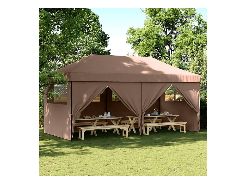 Tendone per Feste Pieghevole Pop-Up con 2 Pareti Marrone