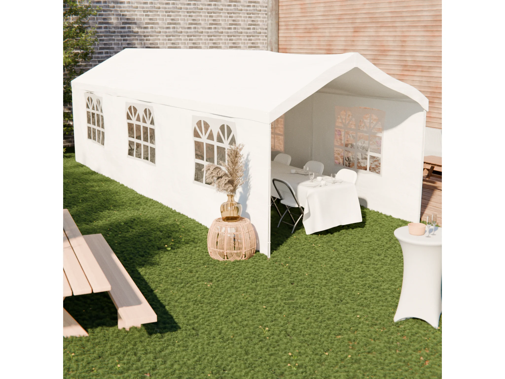 Telo di ricambio laterale per Gazebo pieghevole apertura a fisarmonica in tessuto Oxford 600D Bianco / Telo con Porta / 2 x 6 mt