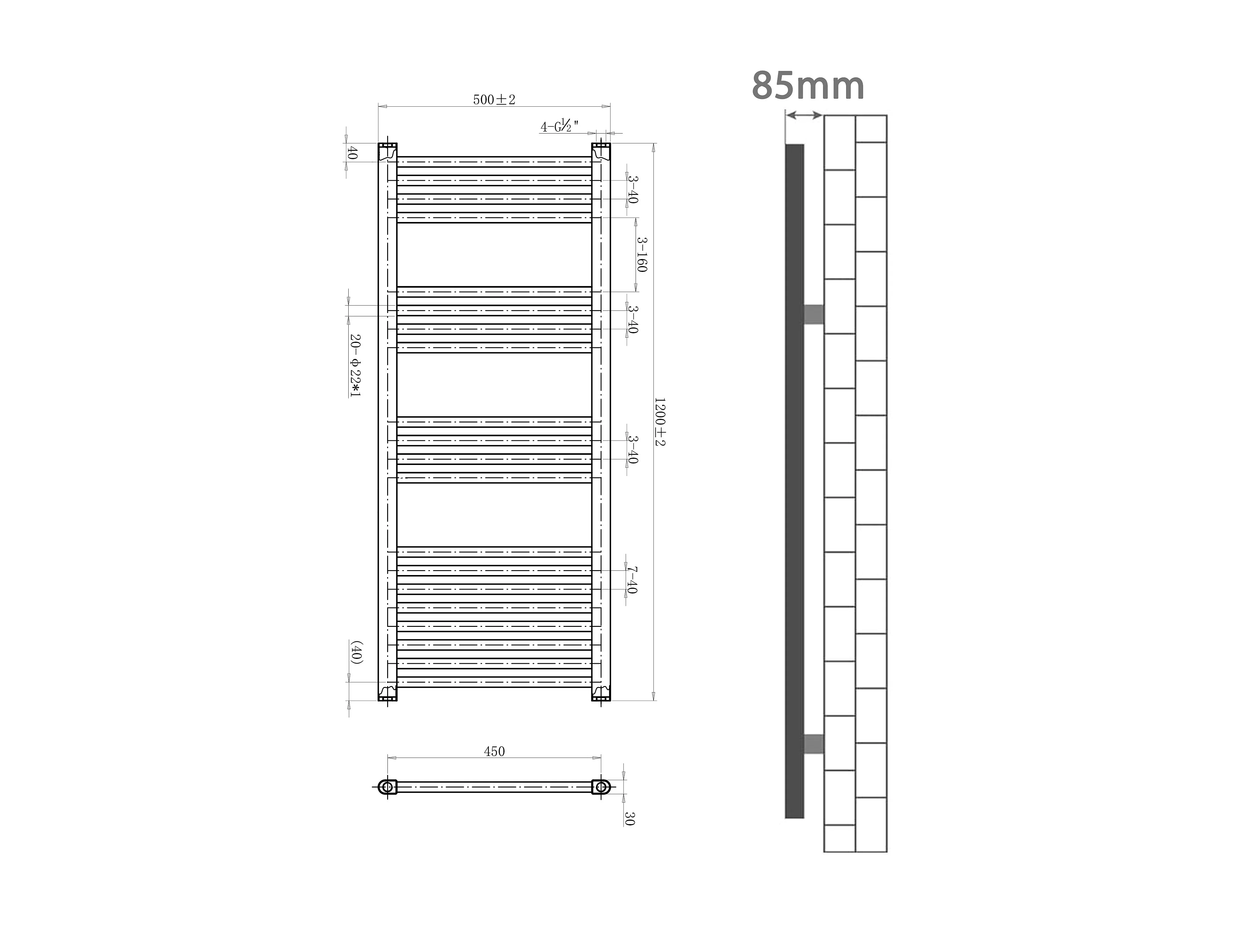Porta asciugamani radiatore 1650x500mm riscaldamento ad acqua Watt 456.9 nero