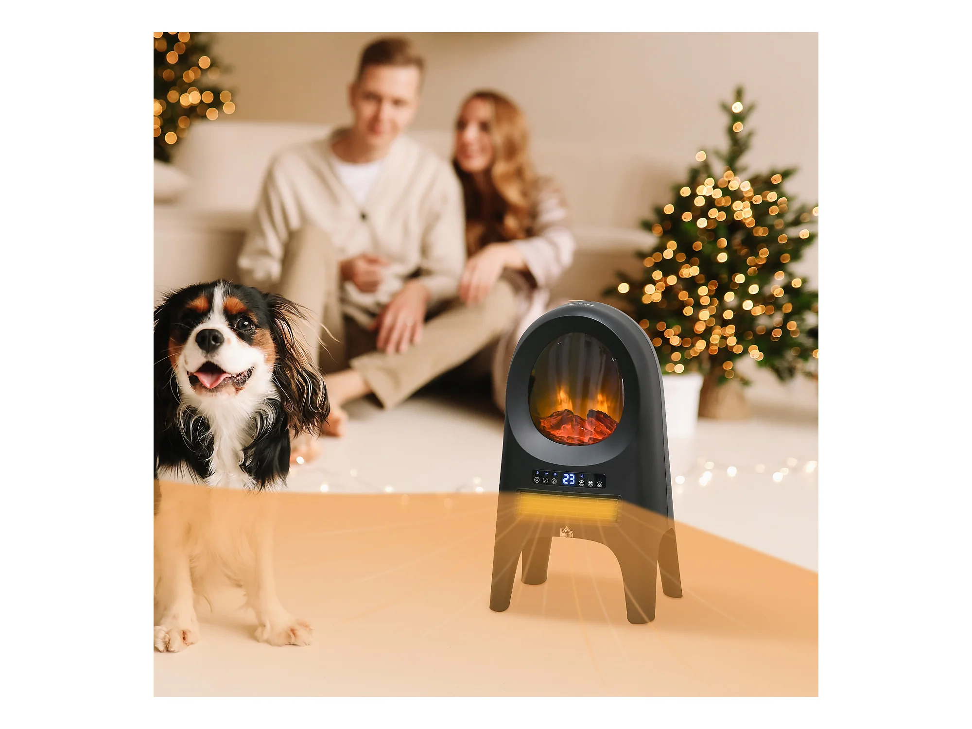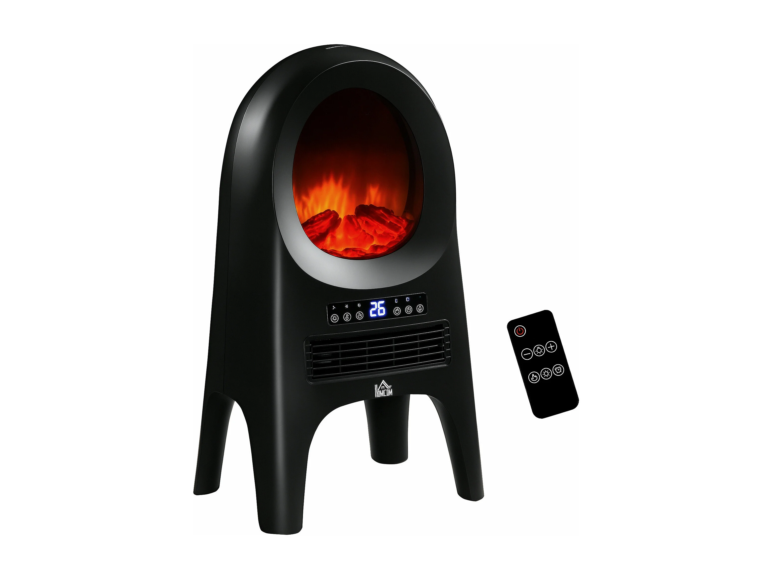 Easycomfort Camino Elettrico Da Terra Con Effetto Fiamma, Temperatura Regolabile 900w-1800w, Copertura 15-20m², 39x26x54.8cm, Nero