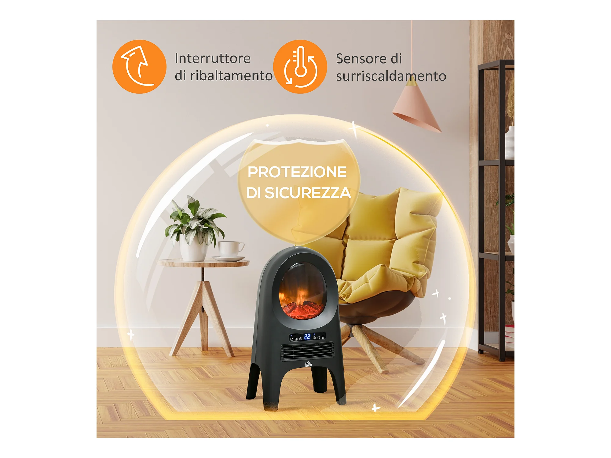 Caminetto da terra elettrico 1000W/2000W effetto fiamma con legna