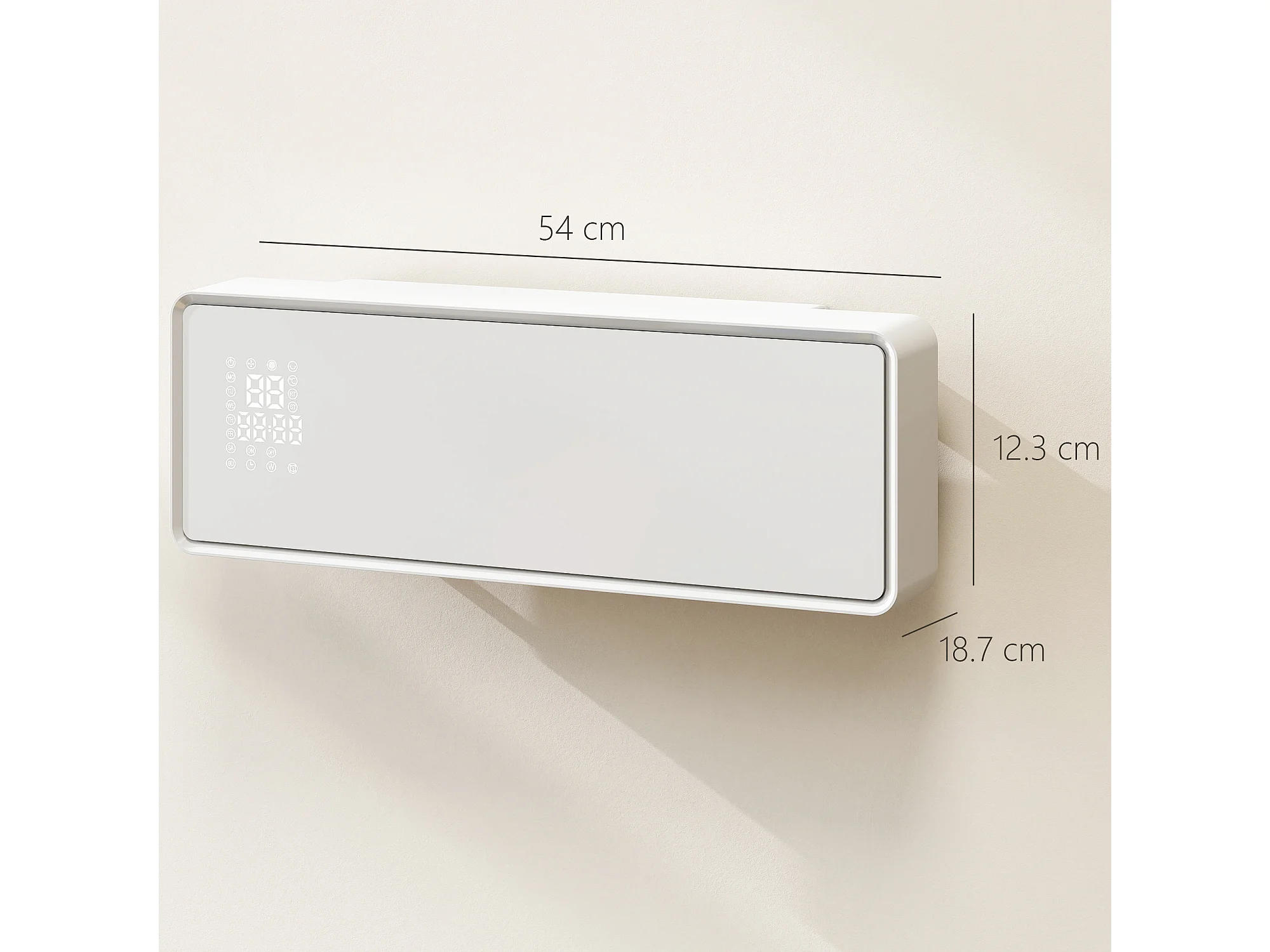 Termoventilatore a muro con 3 modalità timer e telecomando bianco