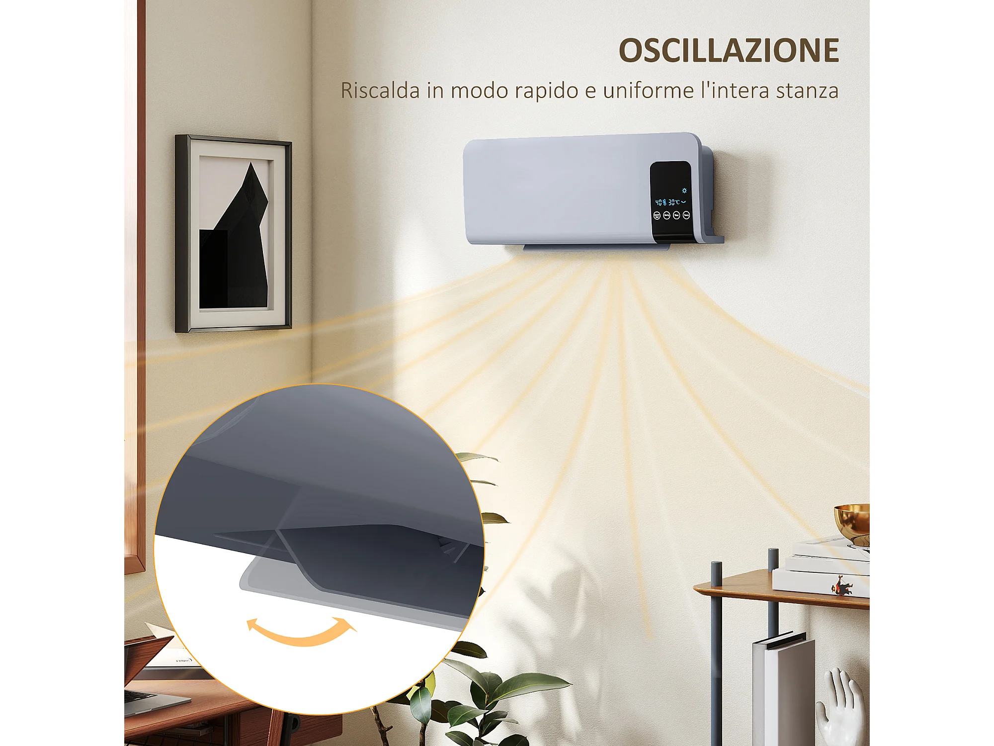 Termoventilatore da parete con timer 12h e 2 modalità grigio