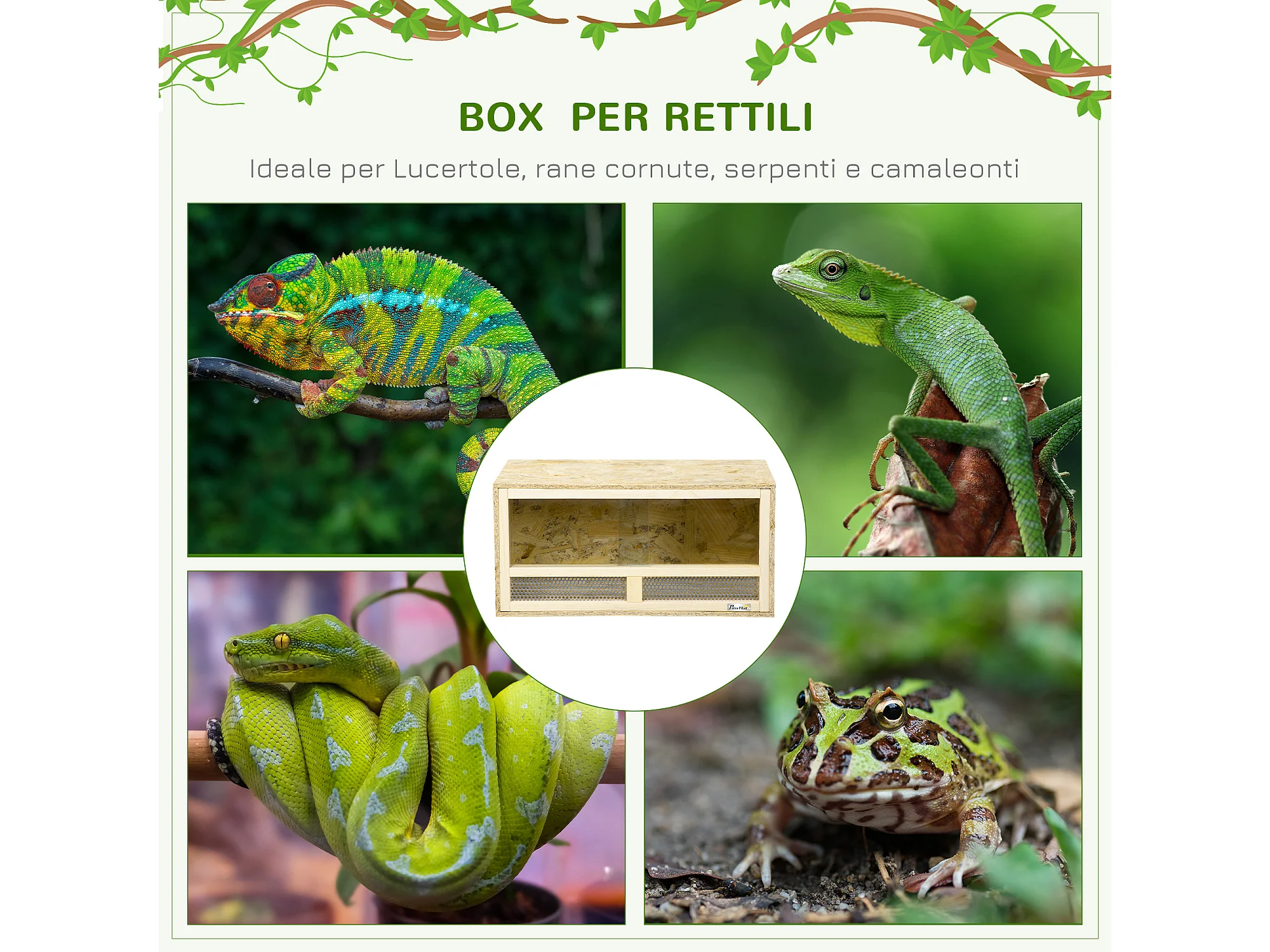 Terrario per rettili in legno porte in vetro e rete 60x29.5x29.5cm