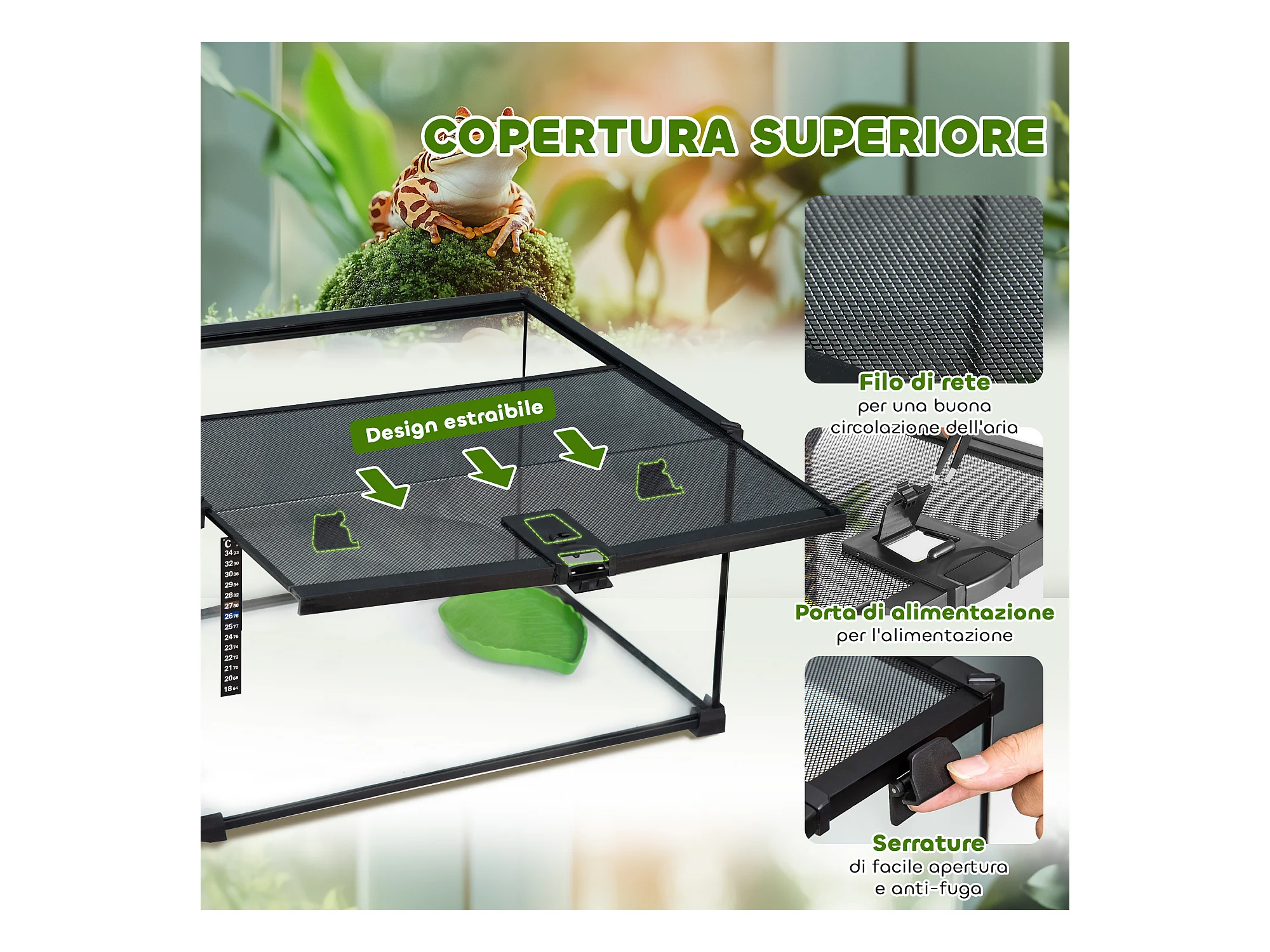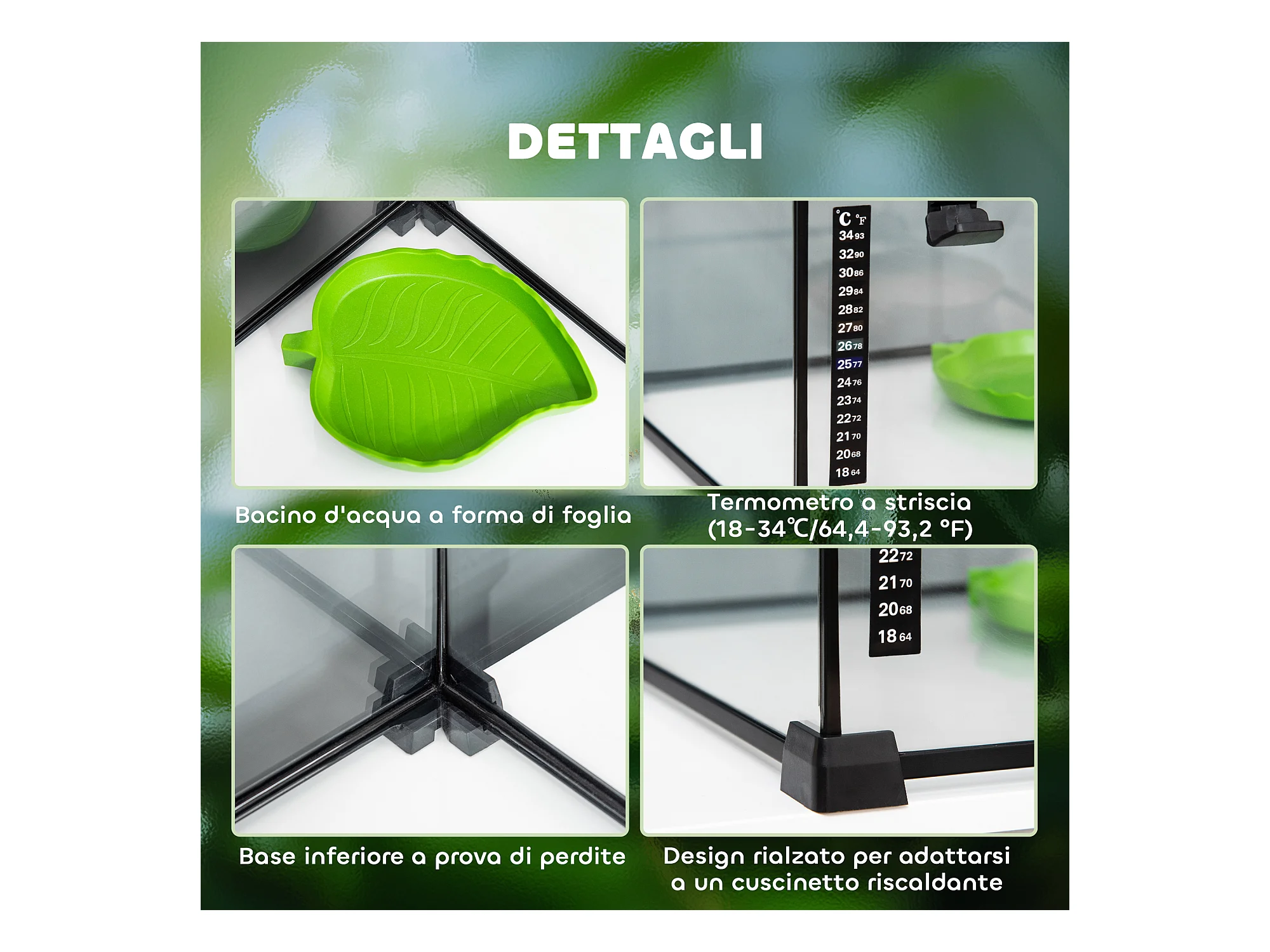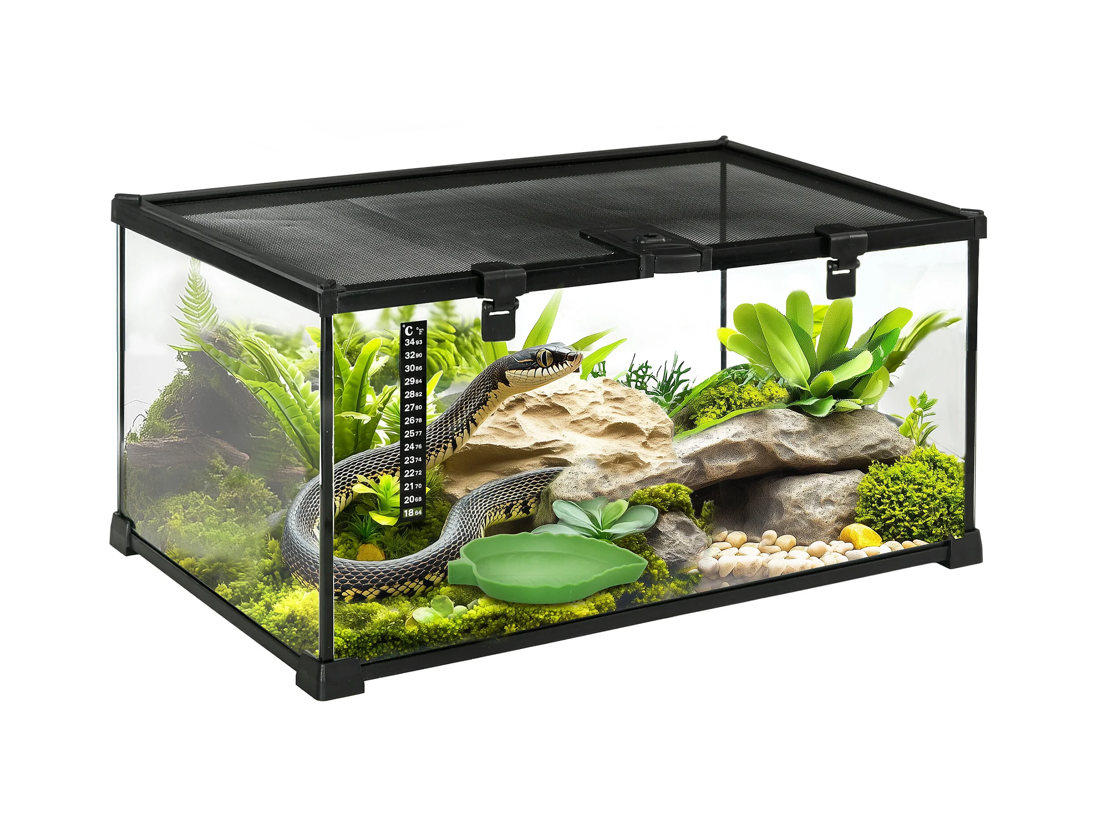 Terrario per tartarughe e rettili termometro 18-34℃ 60x40x40.5cm
