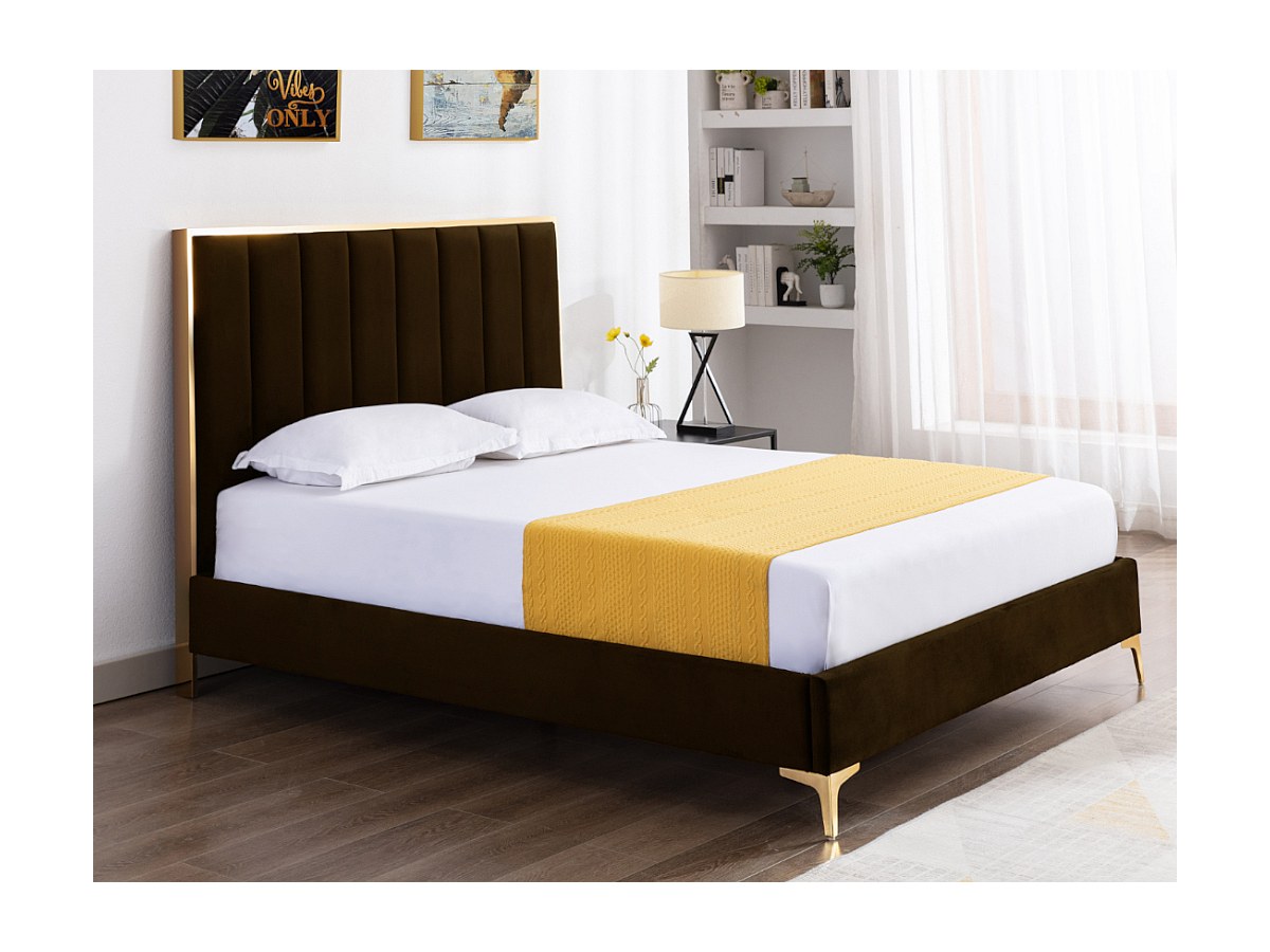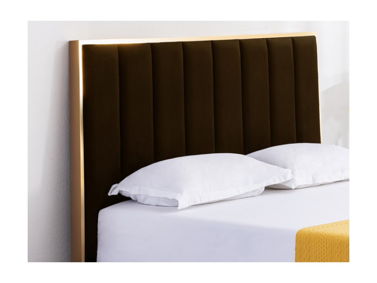 Testata con cuciture verticali 160 cm Velluto Marrone e Dorato - CLARISSE