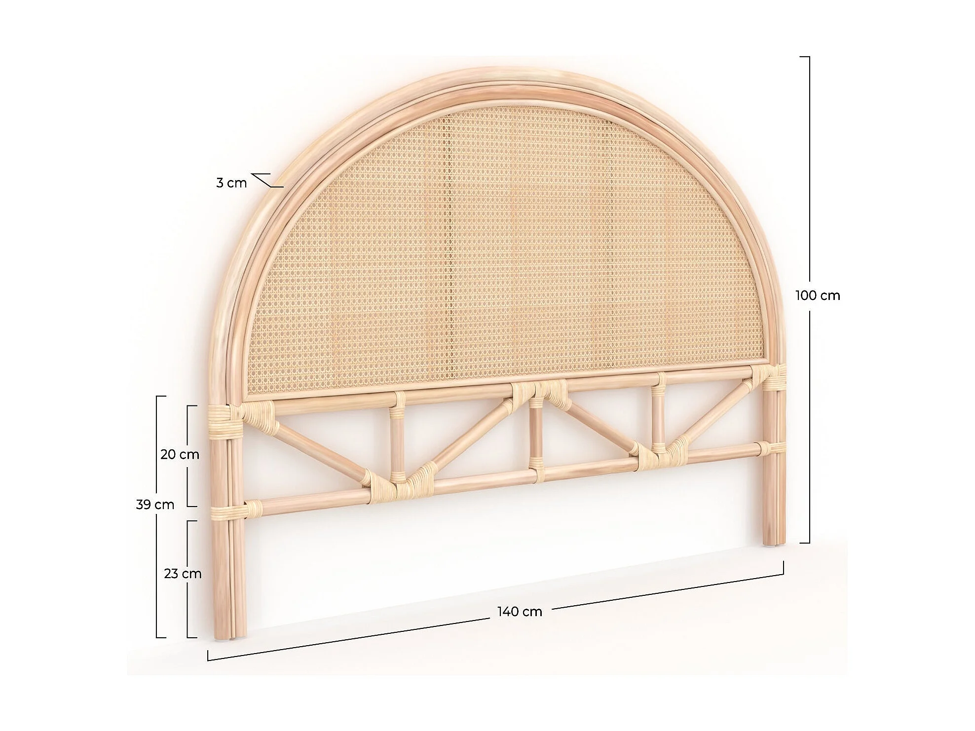 Testiera del letto 140 cm in rattan e canneggiato - Néora