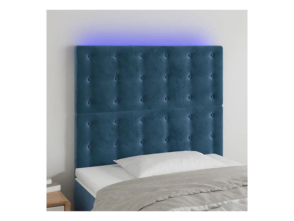 Testiera | Testata del letto a LED Blu Scuro 100x5x118/128 cm in Velluto