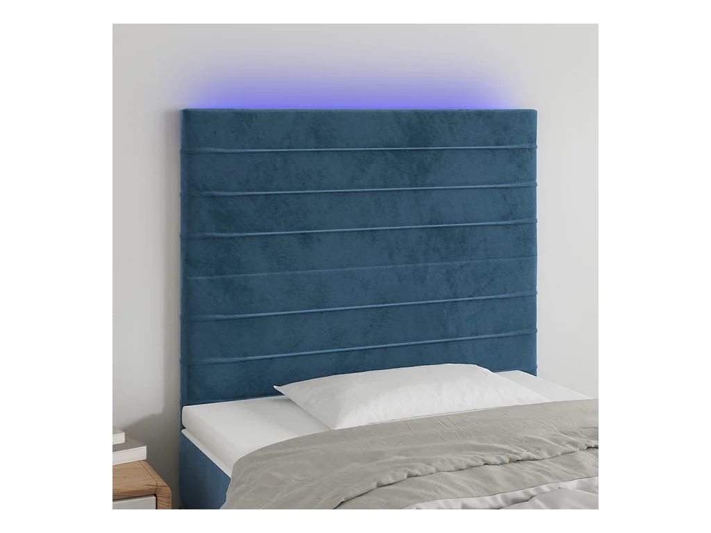 Testiera | Testata del letto a LED Blu Scuro 90x5x118/128 cm in Velluto