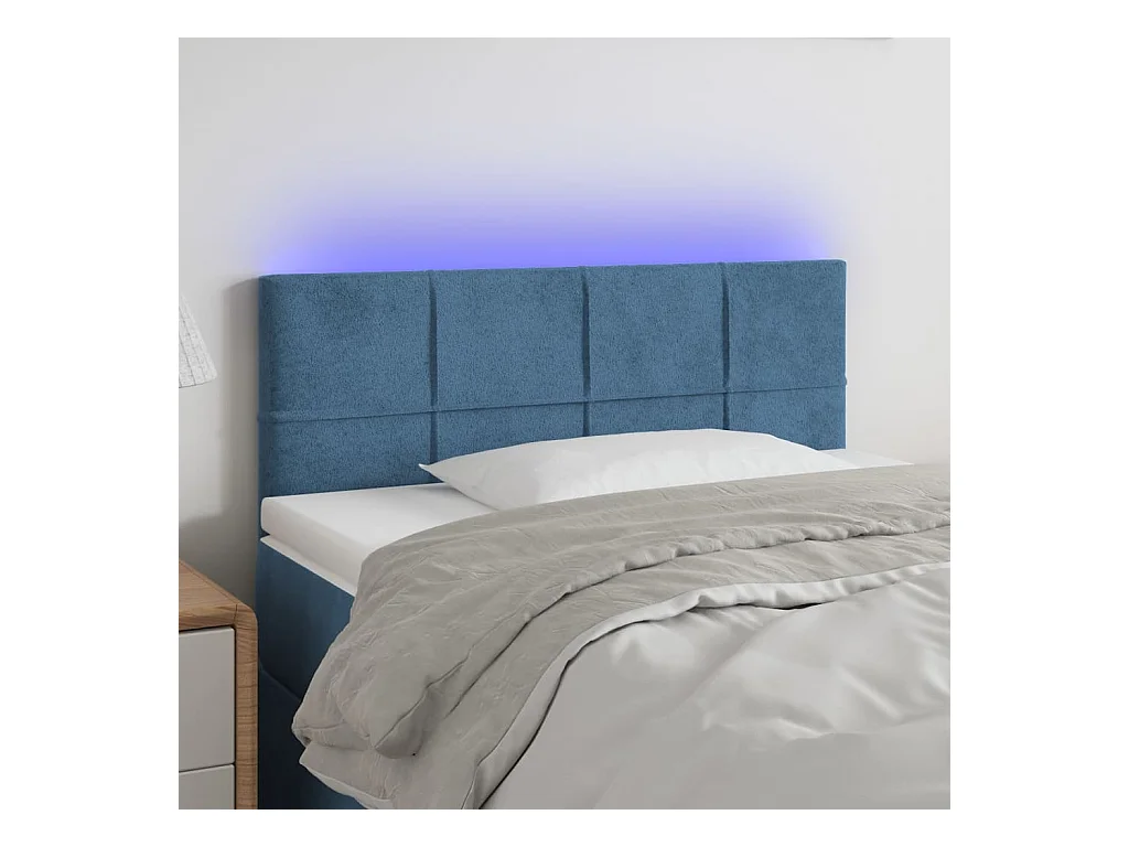 Testiera | Testata del letto a LED Blu Scuro 100x5x78/88 cm in Velluto