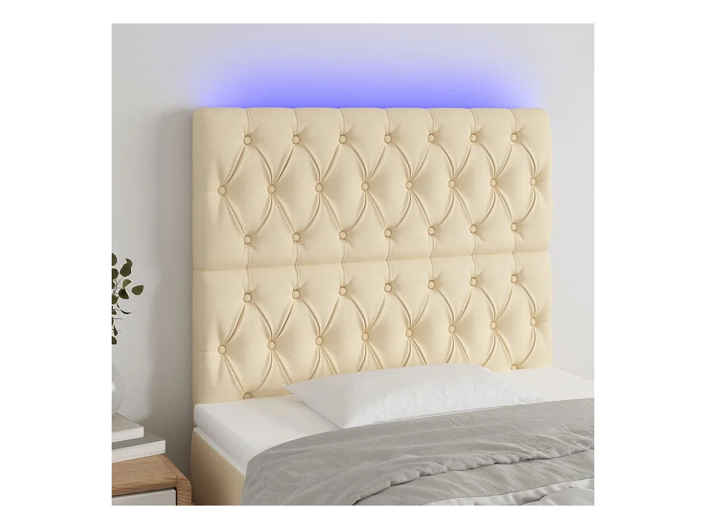 Testiera | Testata del letto a LED crema 90x5x118/128 cm in Tessuto