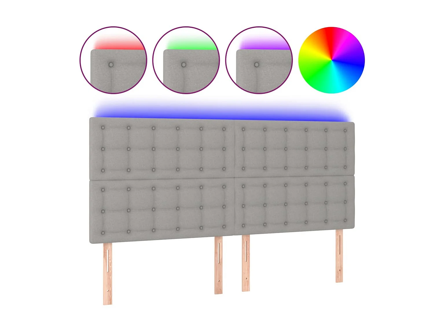 Testiera a LED Grigio Chiaro 200x5x118/128 cm in Tessuto CFW401229