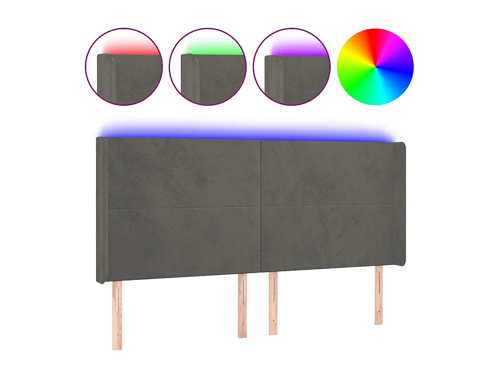 Testiera a LED Grigio Scuro 163x16x118/128cm in Velluto CFW268558