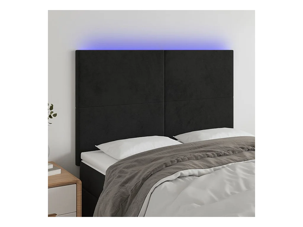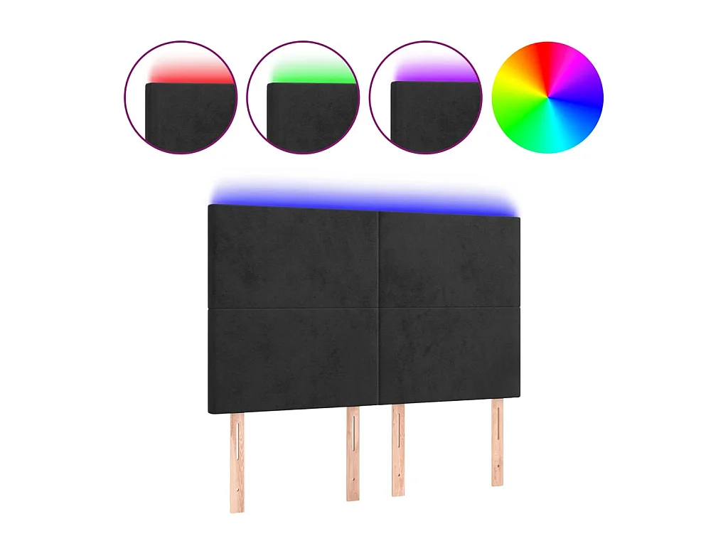Testiera a LED Nera 144x5x78/88 cm in Velluto CFW380887