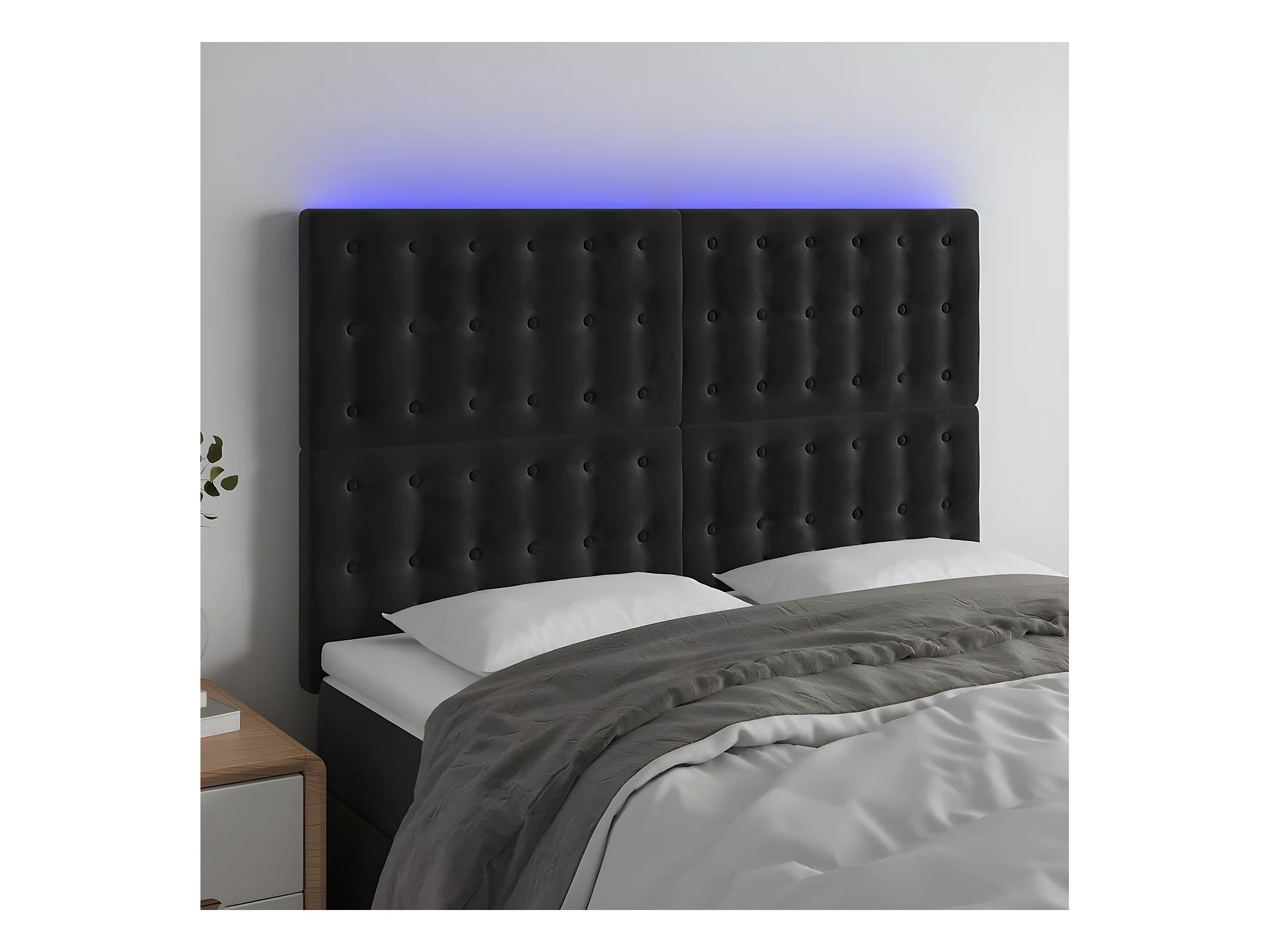 Testiera | Testata del letto a LED Nera 144x5x118/128 cm in Velluto