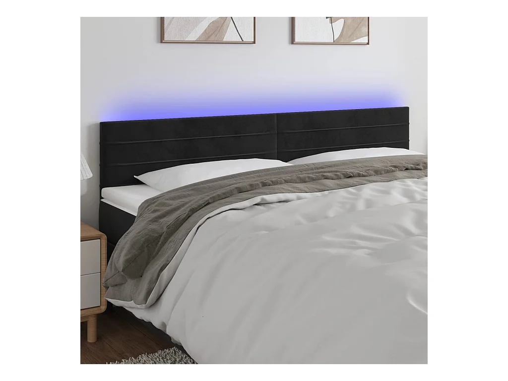 Testiera | Testata del letto a LED Nera 200x5x78/88 cm in Velluto