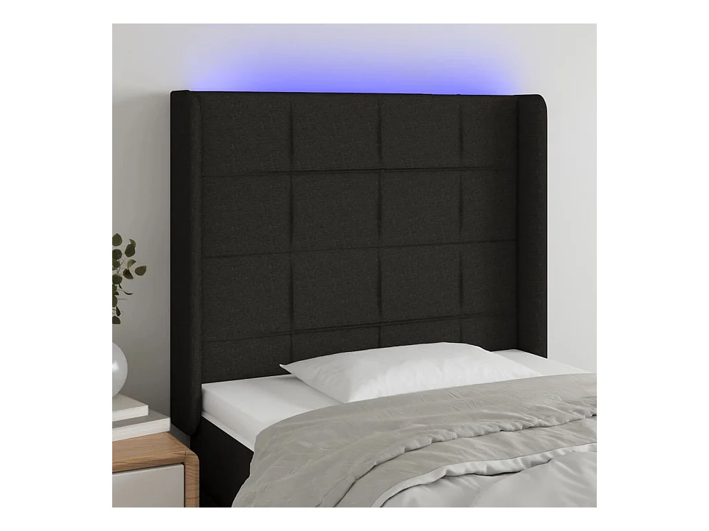Testiera a LED Nera 83x16x118/128 cm in Tessuto