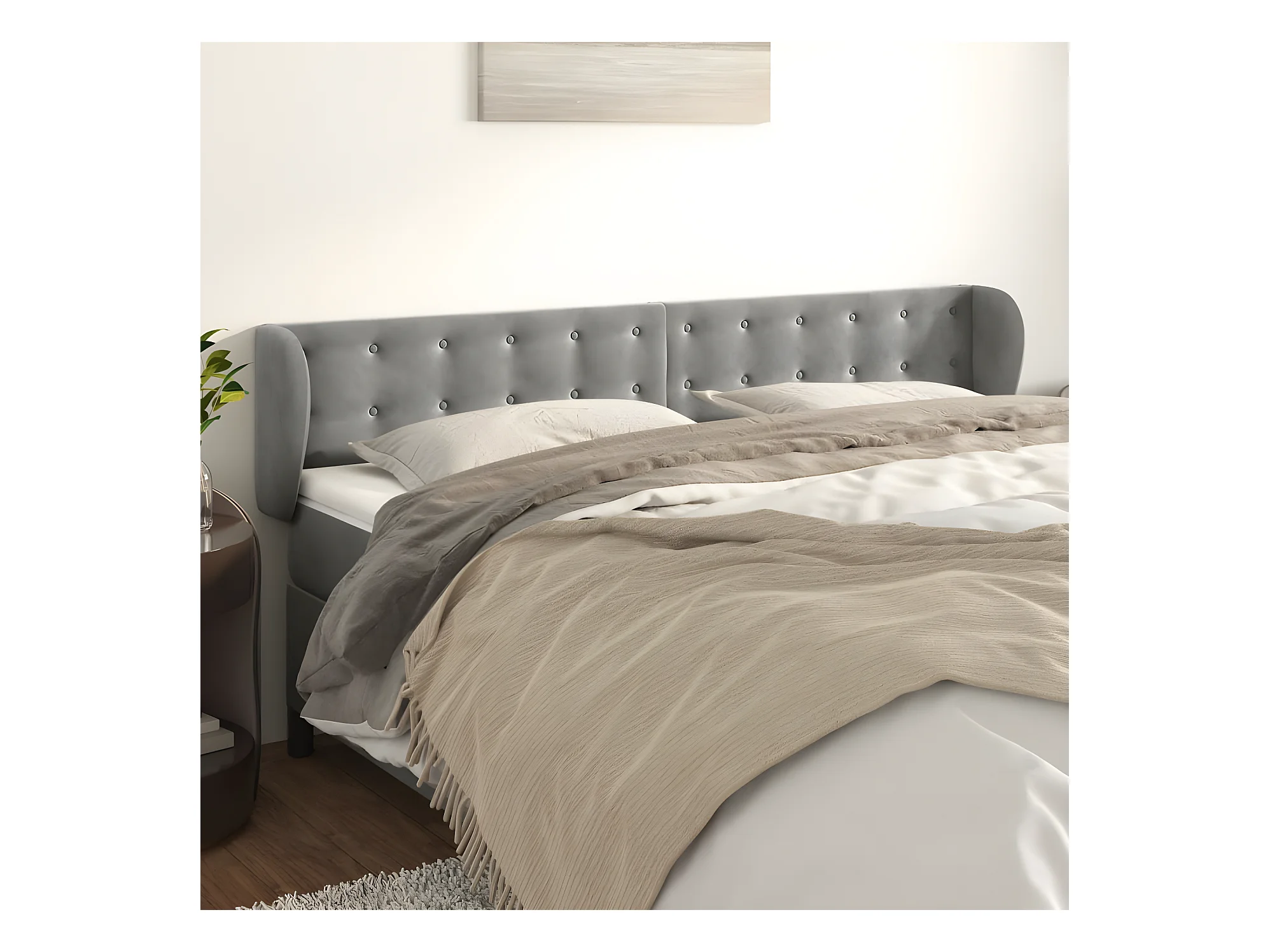 Testiera ad Orecchio Grigio Chiaro 183x23x78/88 cm in Velluto CFW224601
