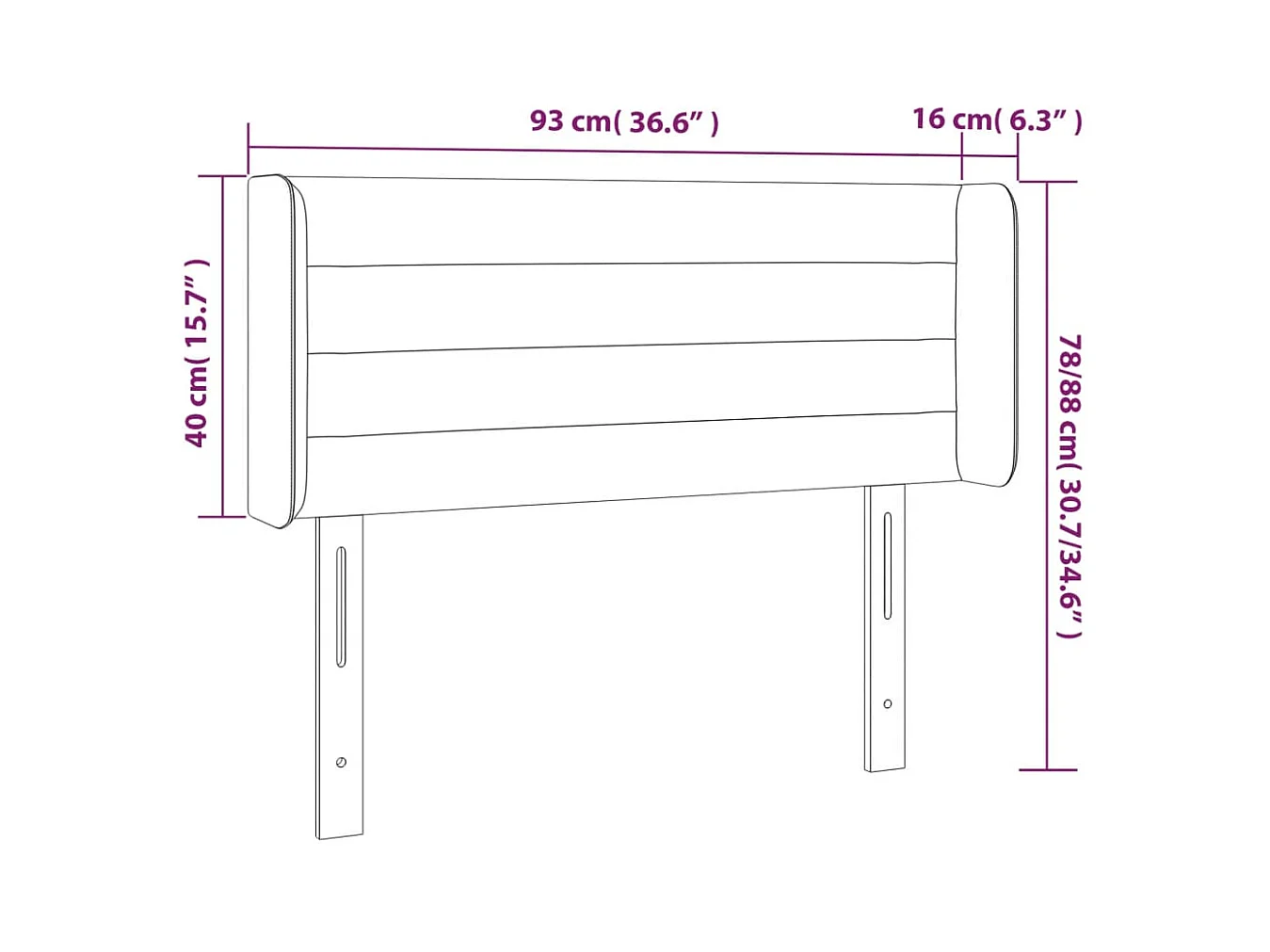 Testiera ad Orecchio Nera 93x16x78/88 cm in Tessuto