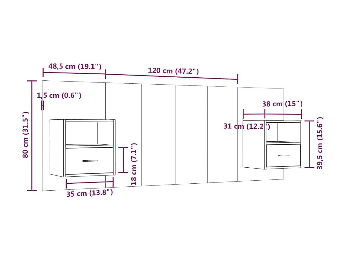 Testiera con armadietti Rovere Sonoma Multistrato