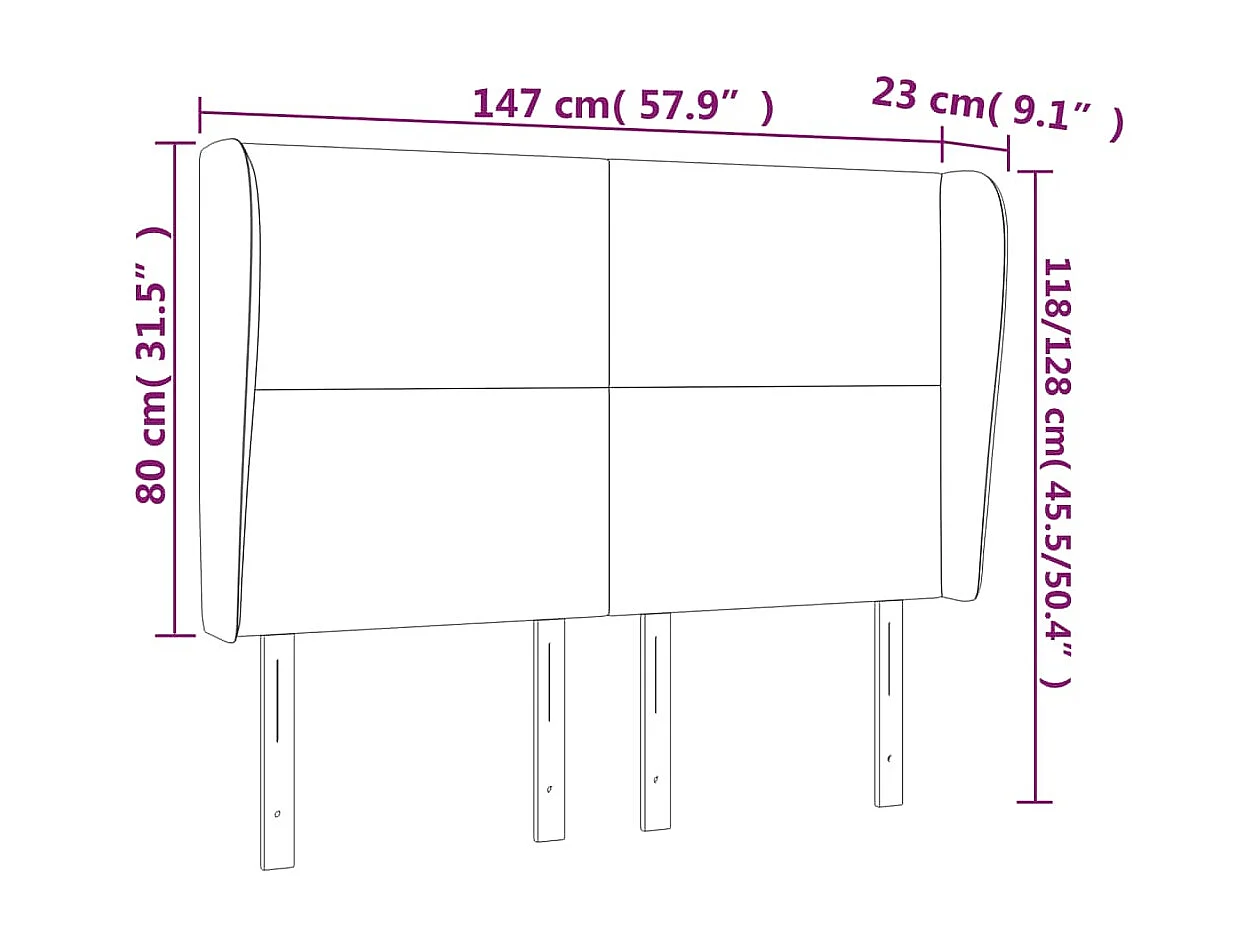 Testiera con orecchie Crema 147x23x118/128 cm Ecopelle