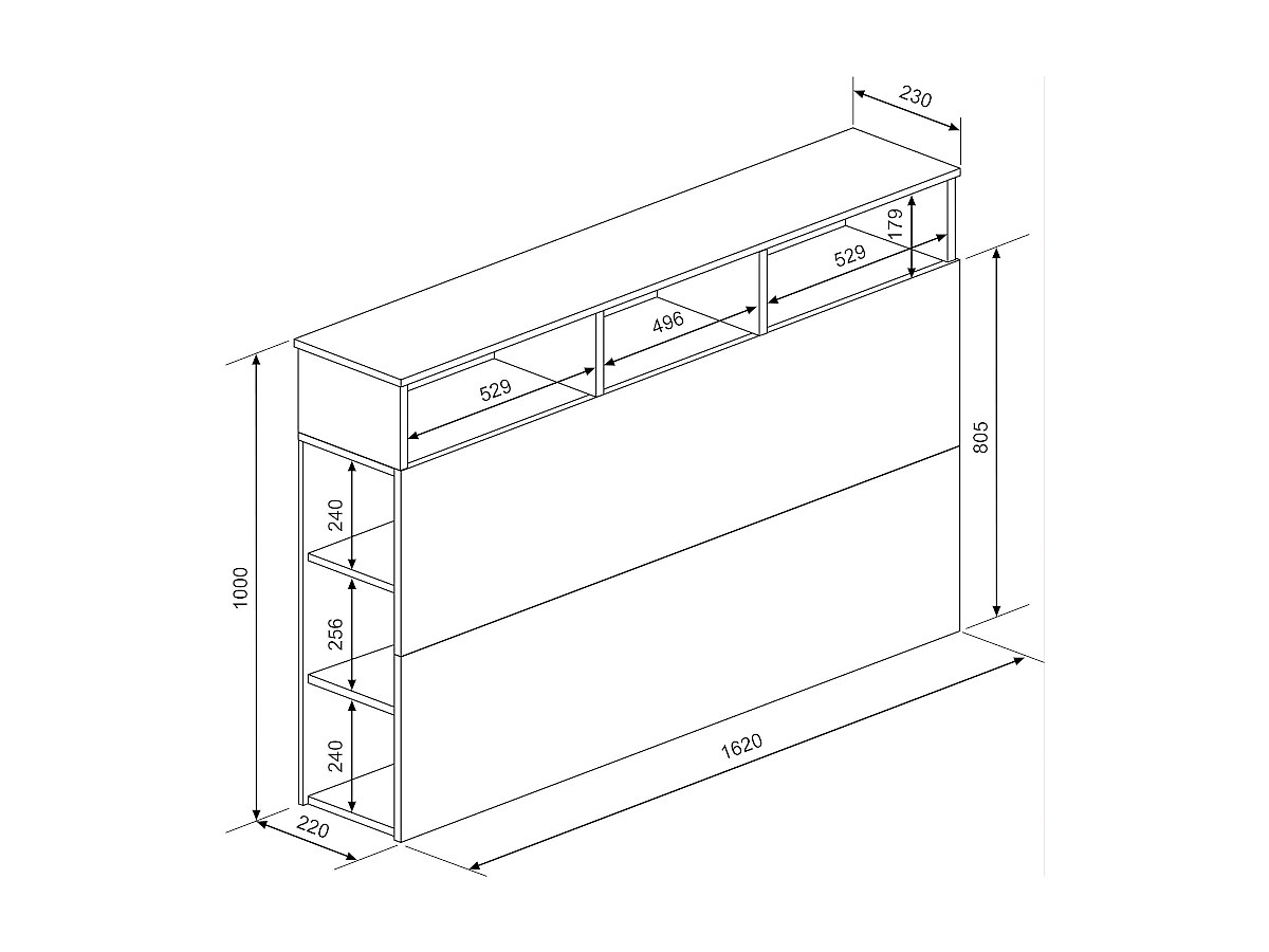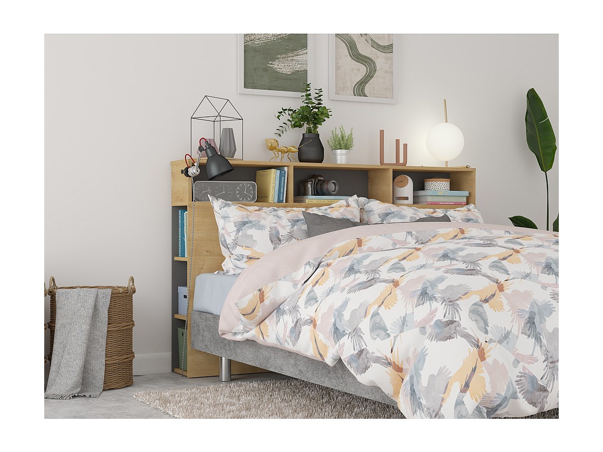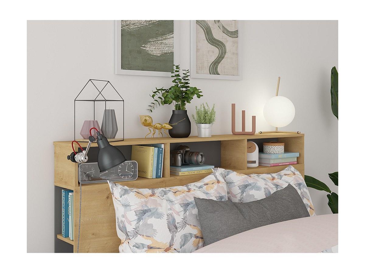 Testiera con scomparti 160 cm Rovere e Antracite - NASTIA
