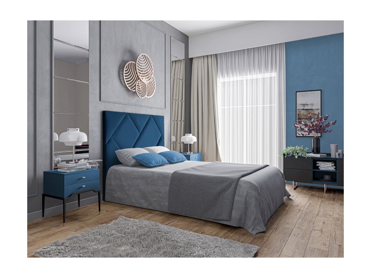 Testiera con USB 160 cm in Velluto Blu notte - KANDRA