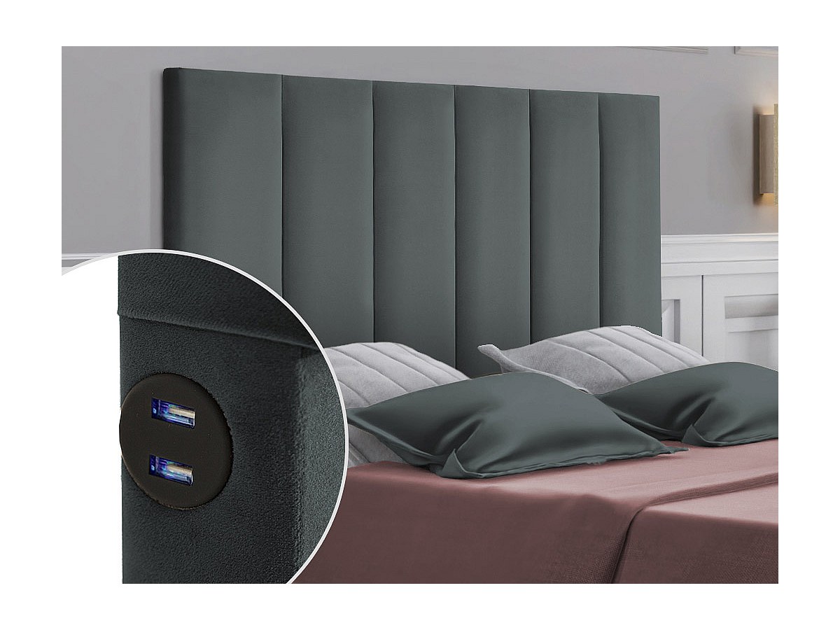Testiera cuciture verticali con USB 140 cm in Velluto Grigio - INGA