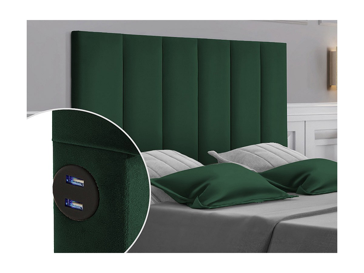 Testiera cuciture verticali con USB 140 cm in Velluto Verde - INGA