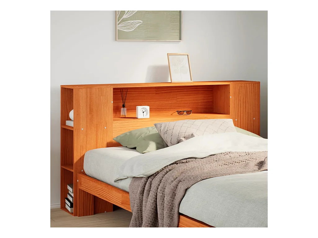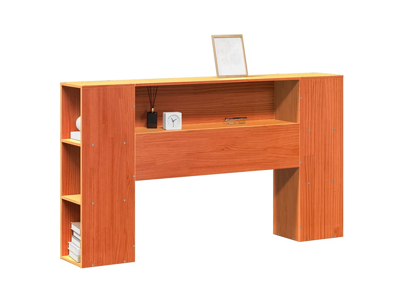 Testiera in cera marrone con contenitore 135 cm in legno massello di pino