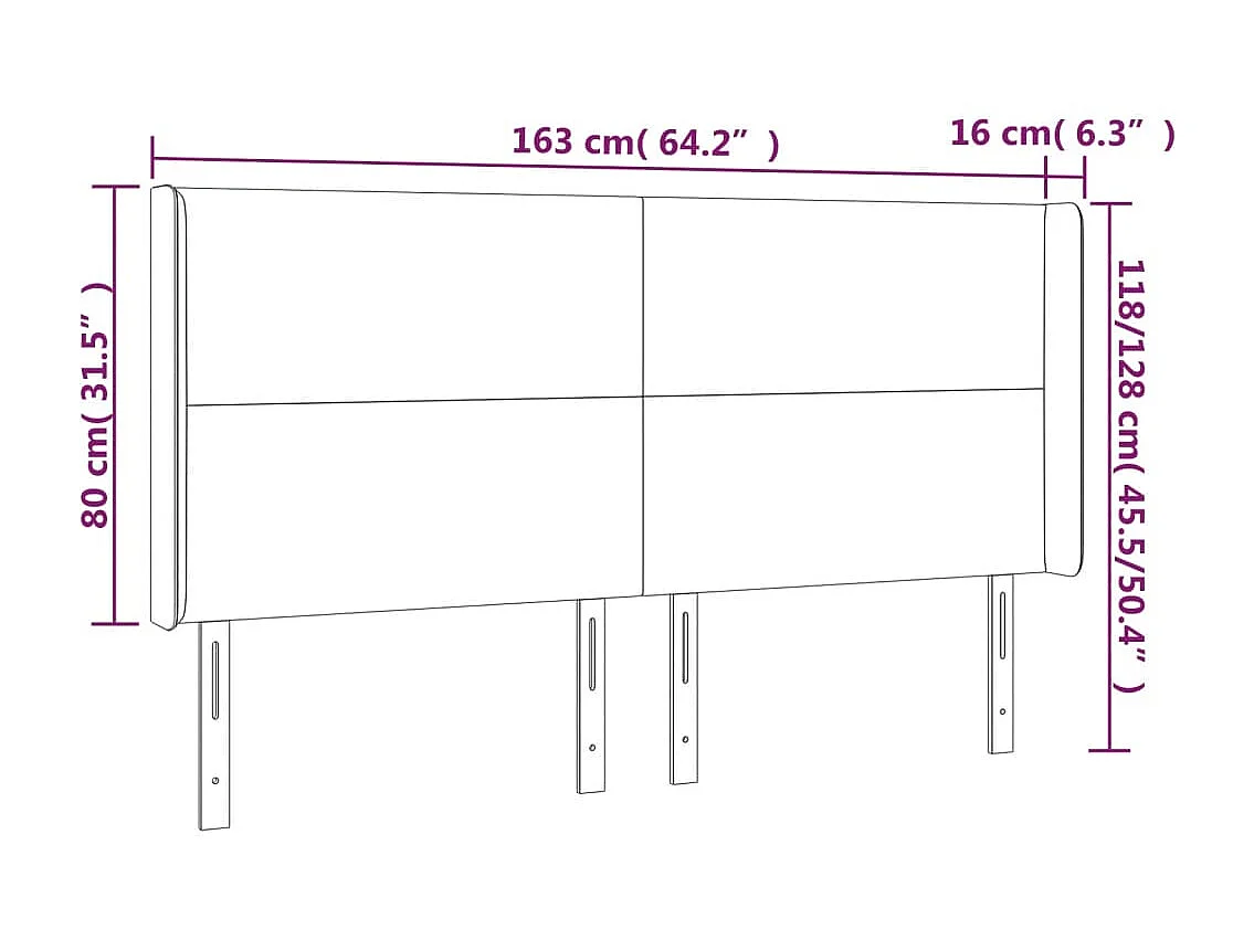 Testiera con orecchie Tortora 163x16x78/88 cm Tessuto