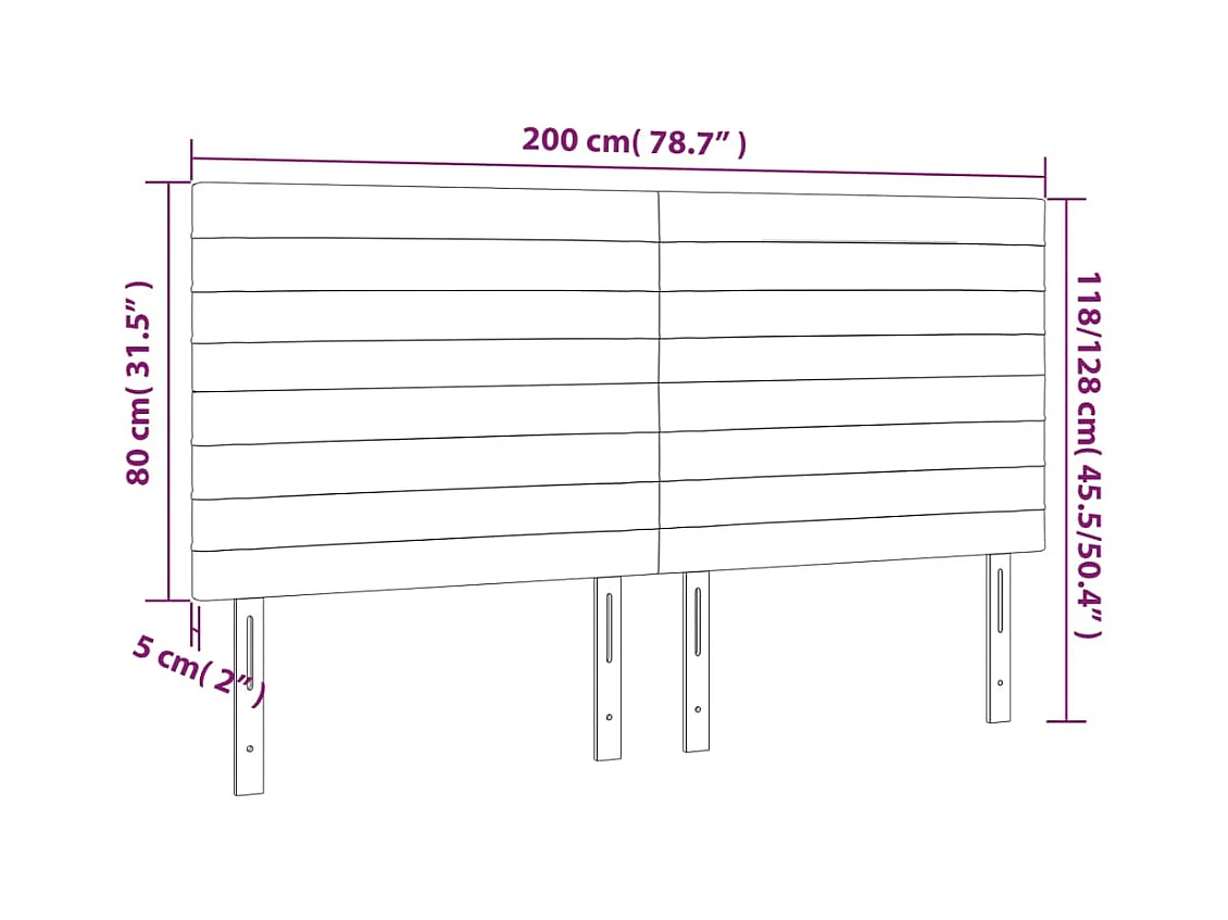 Testiera LED Grigio Chiaro 200x5x118/128 cm Tessuto