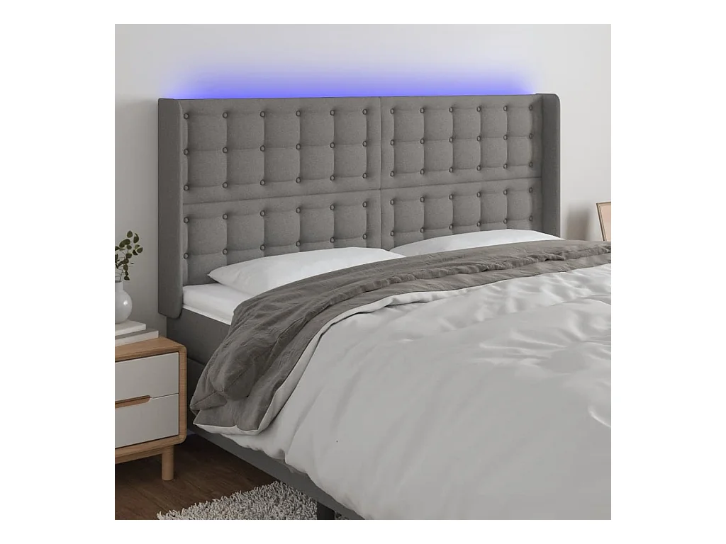 Testiera LED Grigio scuro 203x16x118/128 cm Tessuto